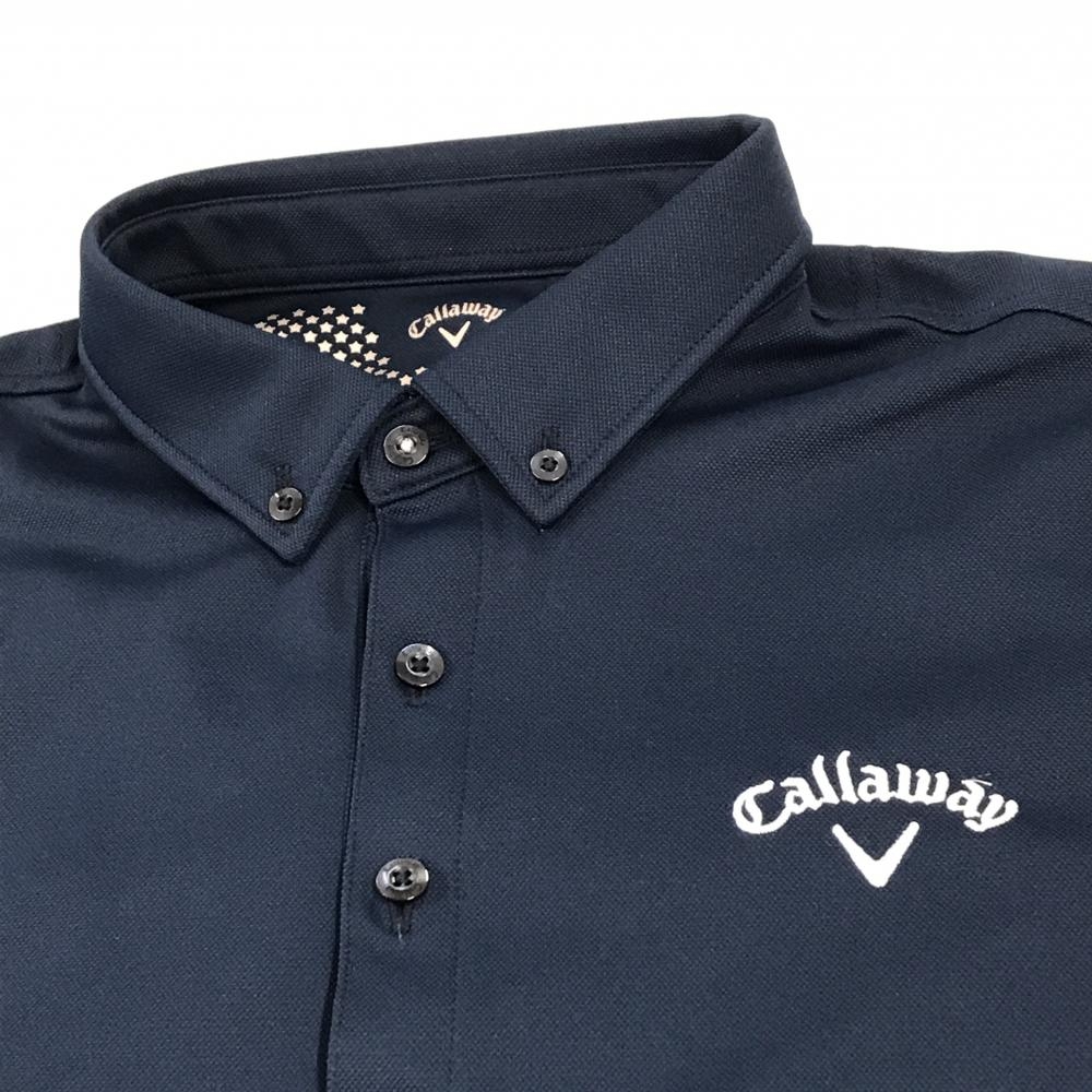 【超美品】キャロウェイ 半袖ポロシャツ ネイビー×白 ロゴ刺しゅう ボタンダウン メンズ L ゴルフウェア Callaway