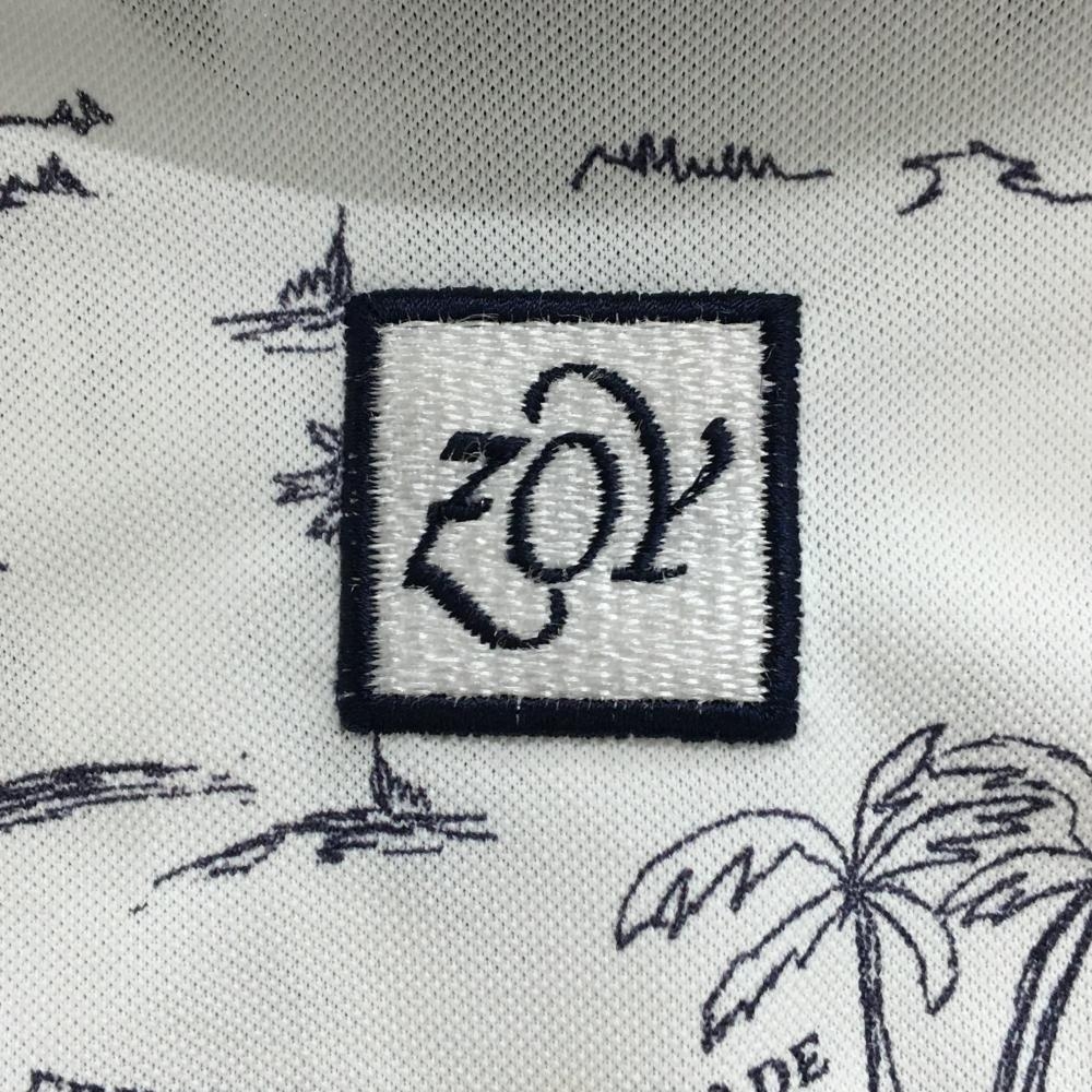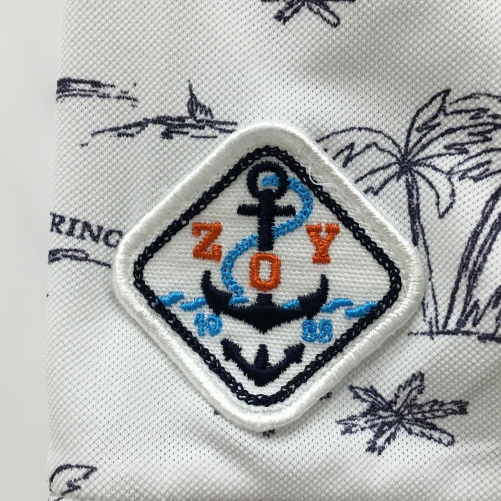【超美品】ゾーイ 半袖ポロシャツ 白×ネイビー 総柄 ヤシの木 レディース 38(M) ゴルフウェア ZOY