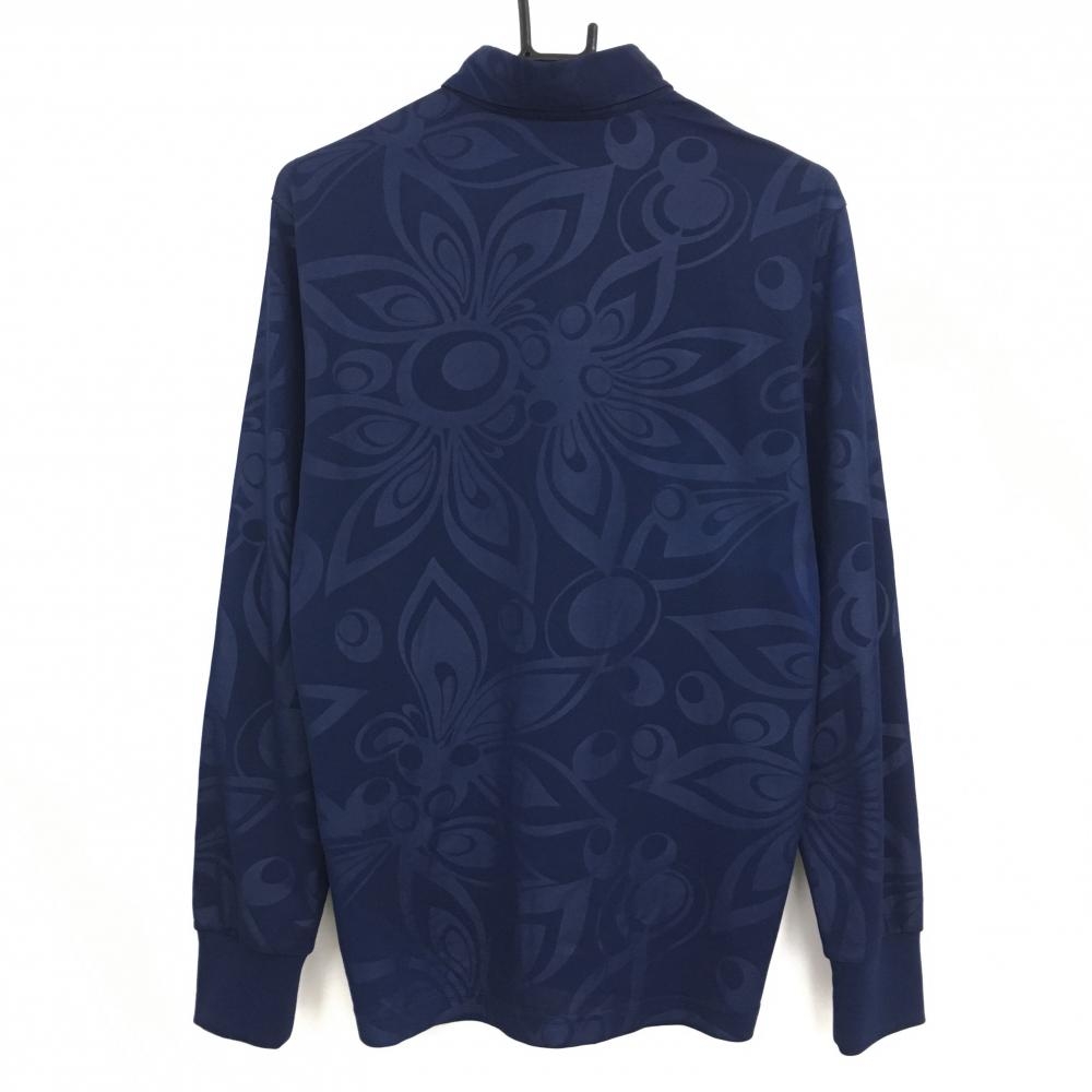 【美品】ラウドマウス 長袖ポロシャツ ネイビー×イエロー シャガデリック 地模様 ボタンダウン メンズ M ゴルフウェア LOUDMOUTH