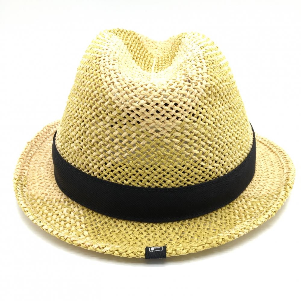 【美品】フィラゴルフ 中折れハット ベージュ×黒 麦わら リボンクラウン ゴルフウェア FILA GOLF