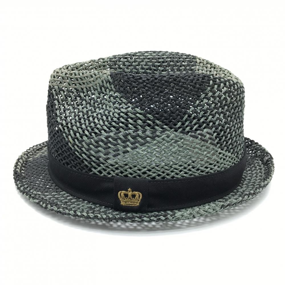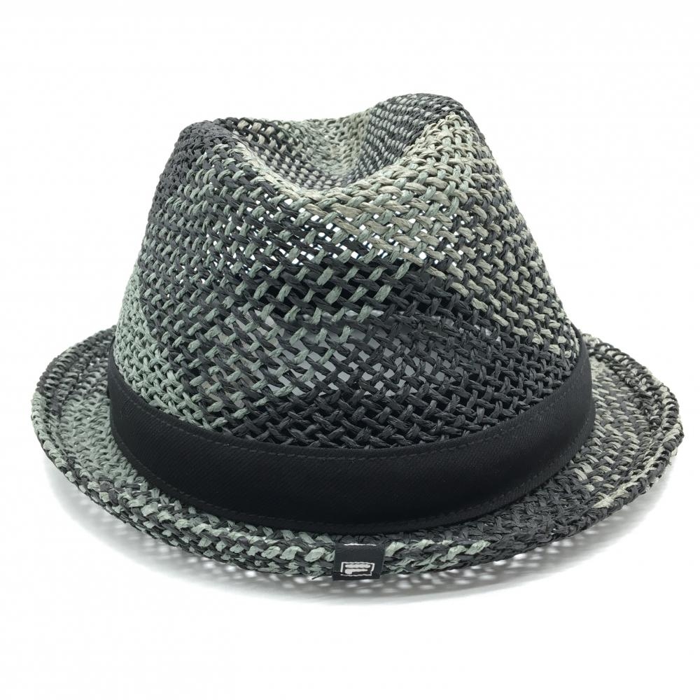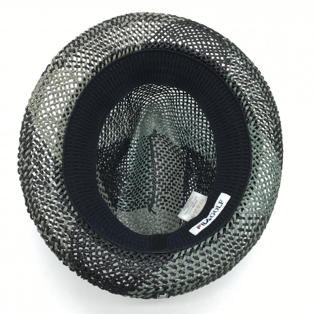 【超美品】フィラゴルフ 中折れハット ライトグレー×ダークグレー 麦わら リボンクラウン ゴルフウェア FILA GOLF