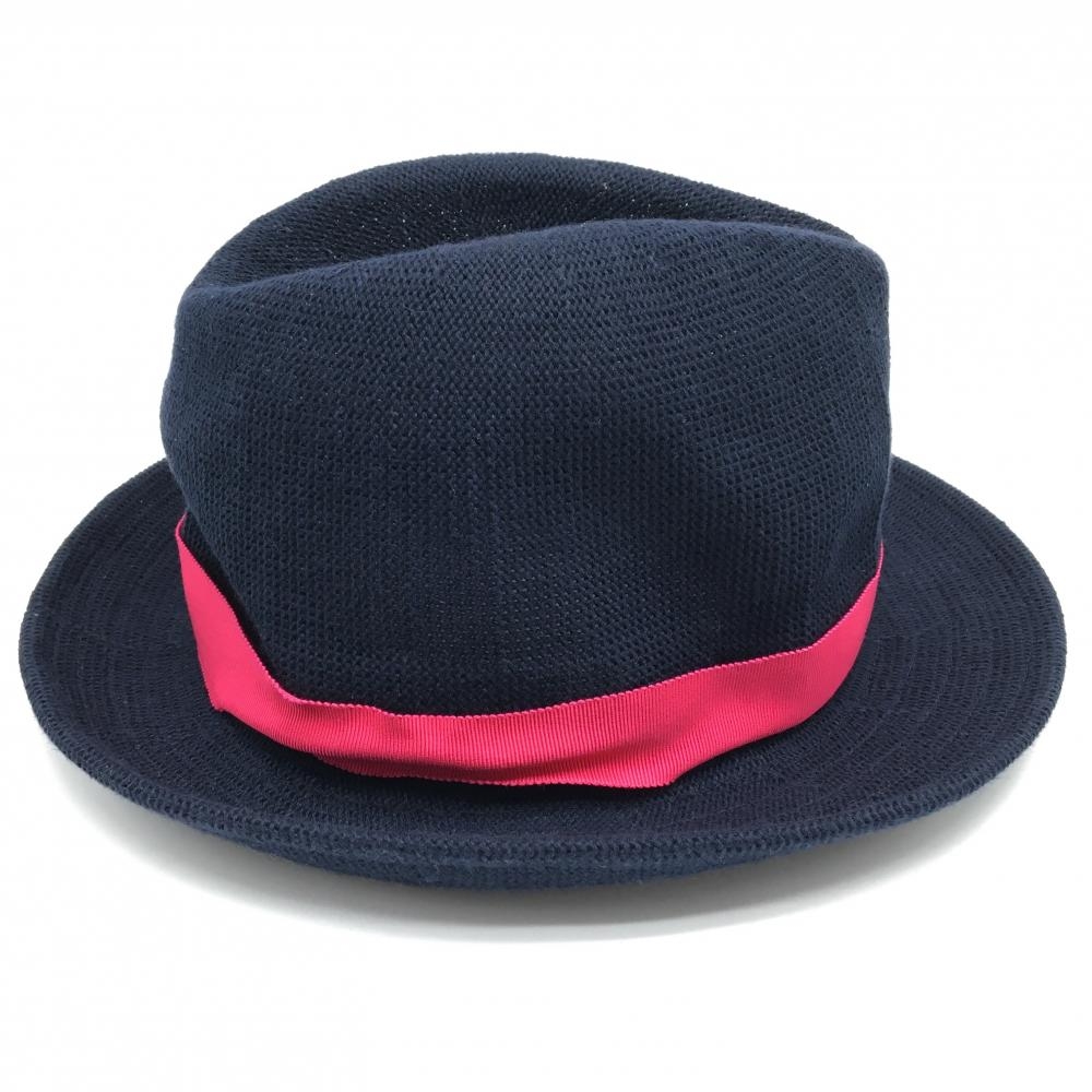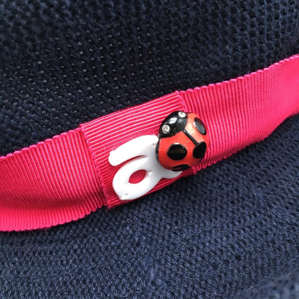 【美品】アルチビオ 中折れハット ネイビー リボンピンク てんとう虫チャーム付 レディース ゴルフウェア archivio
