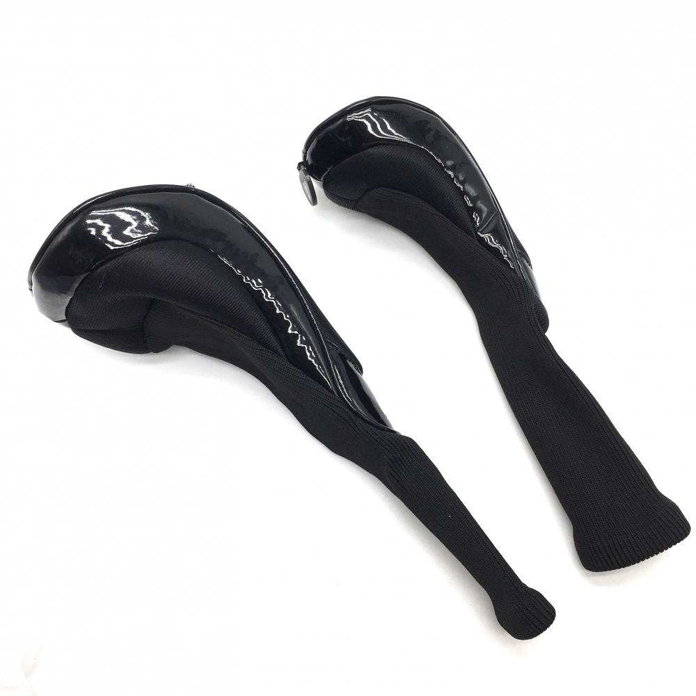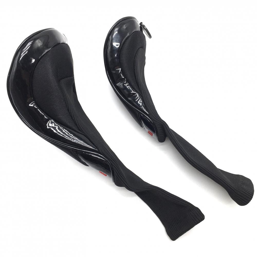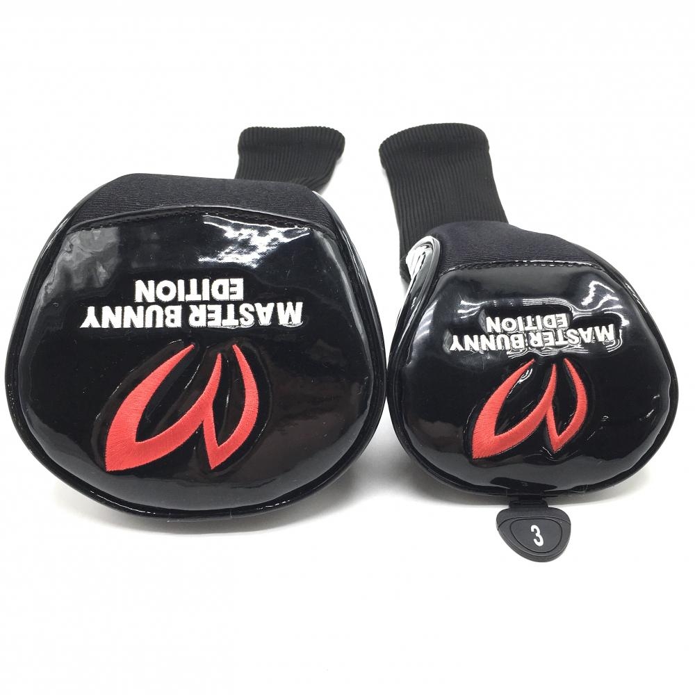 【美品】マスターバニー ヘッドカバー2点セット(DR FW) 黒×レッド ロゴ刺しゅう しわ ゴルフ MASTER BUNNY EDITION