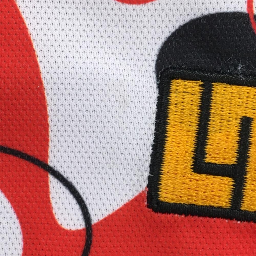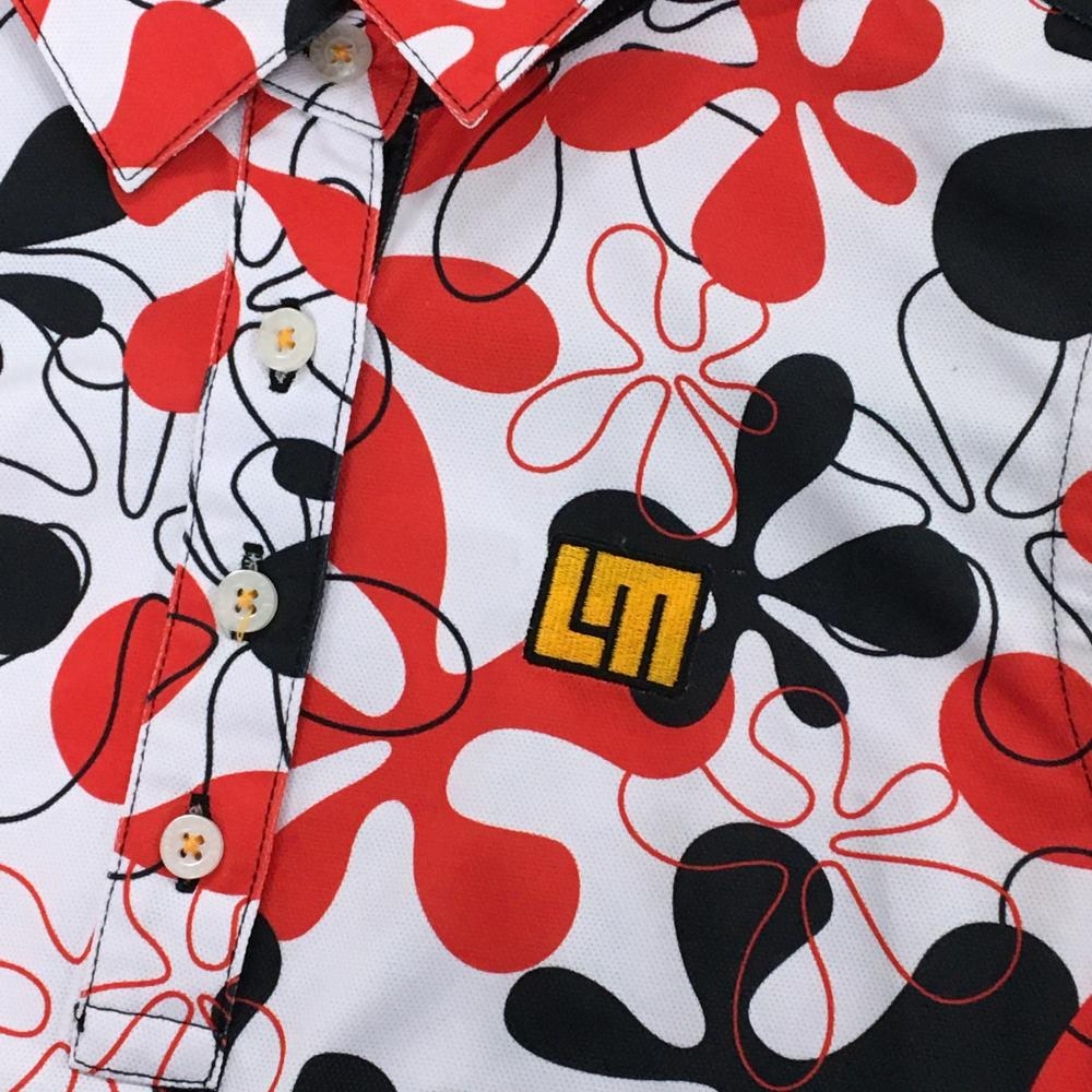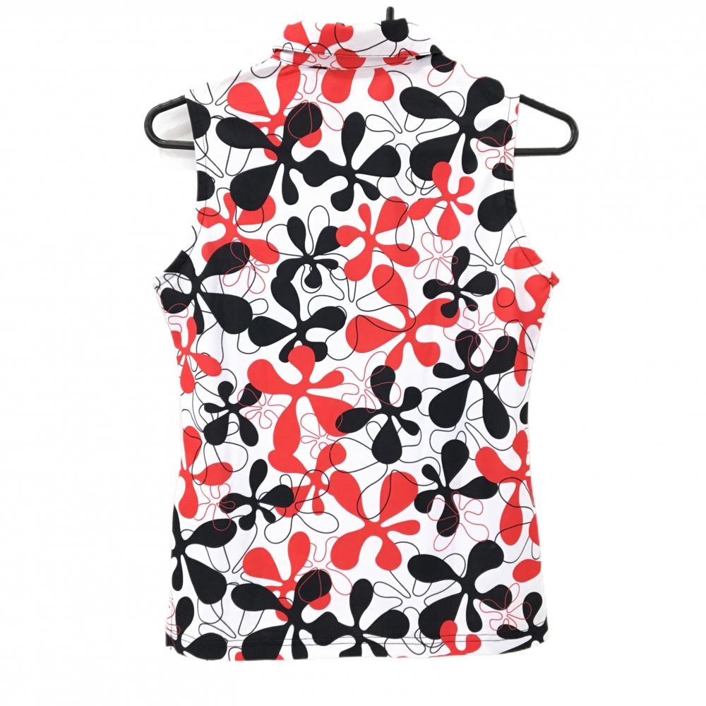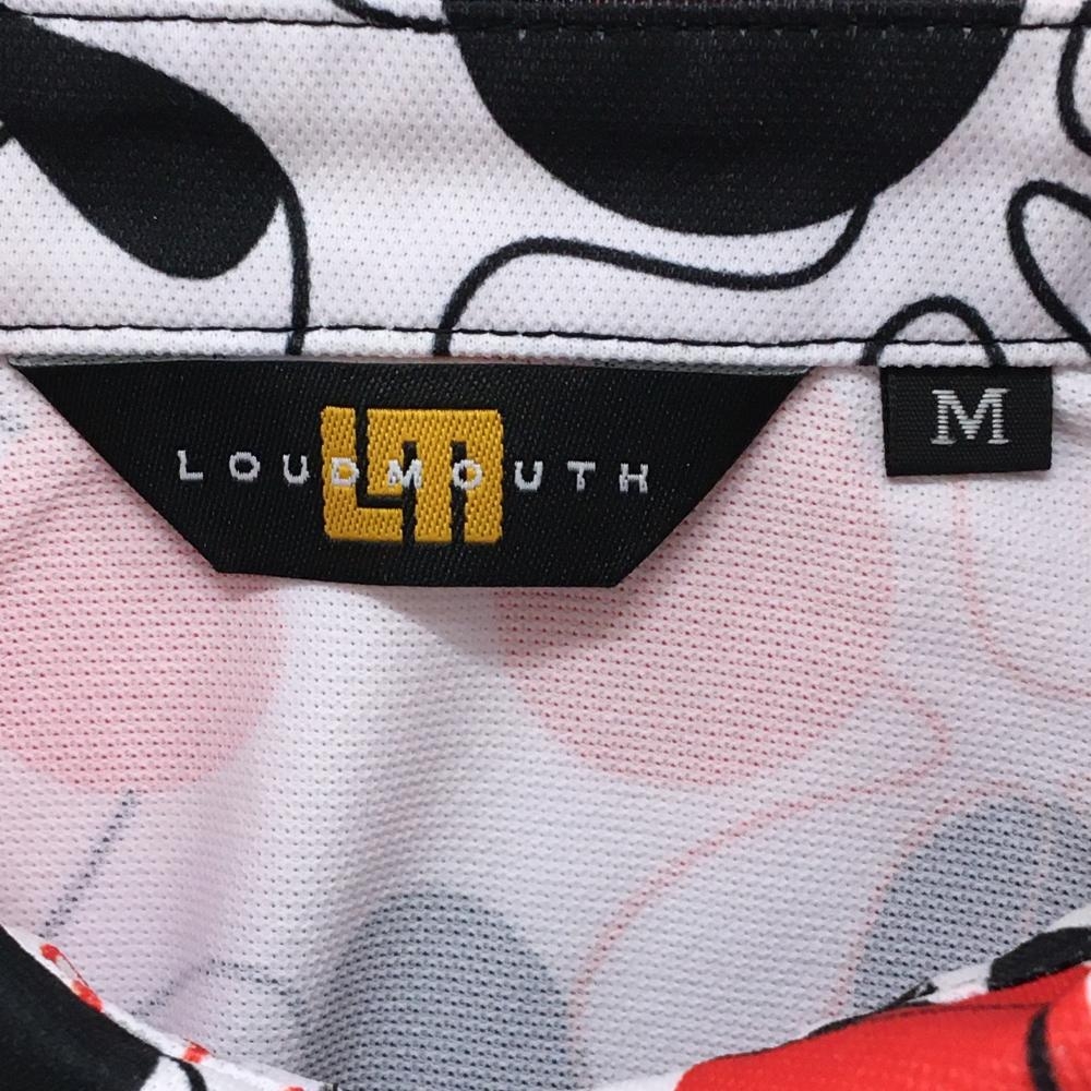 【美品】ラウドマウス ノースリーブポロシャツ 白×レッド ファイヤーコーラルホワイト柄 レディース M ゴルフウェア LOUDMOUTH
