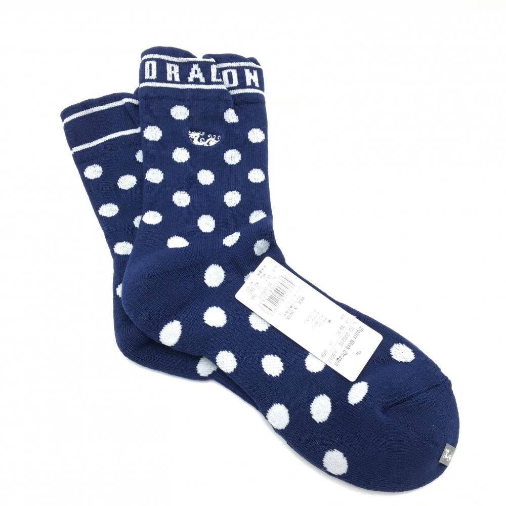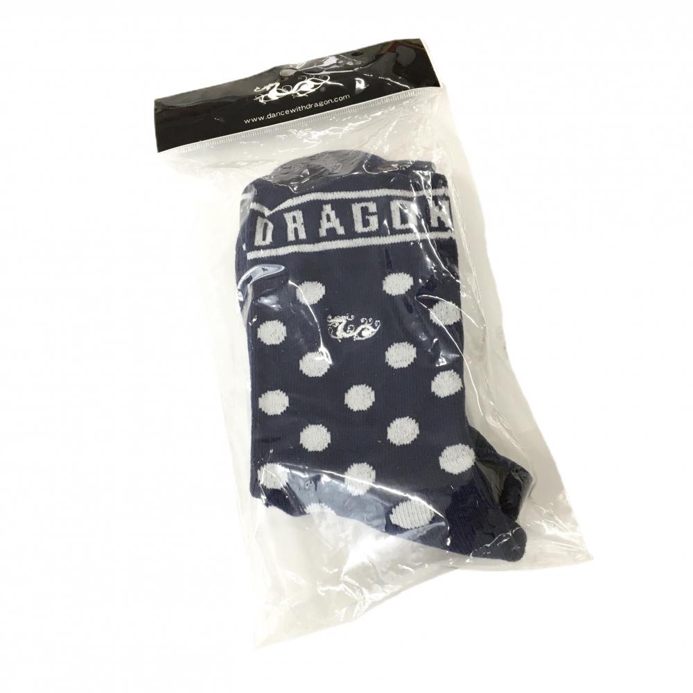 【新品】ダンスウィズドラゴン ソックス ネイビー×白 ドット ロゴ刺しゅう レディース 99(F) ゴルフウェア Dance With Dragon