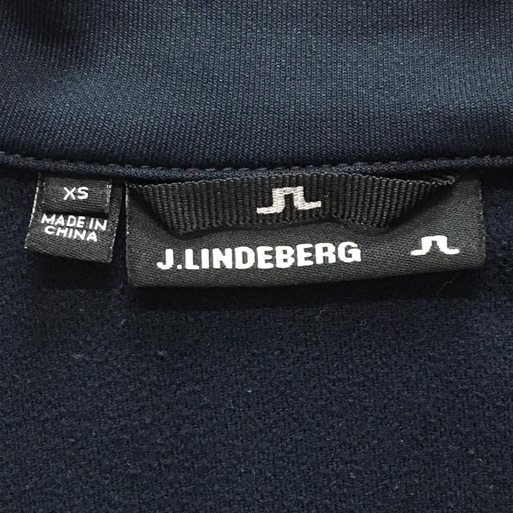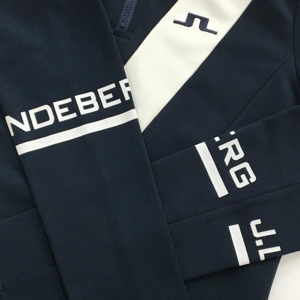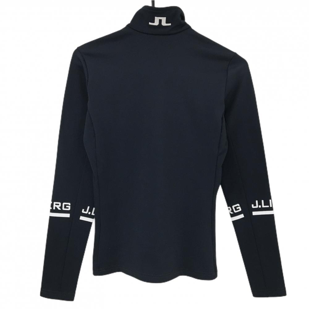 【美品】ジェイリンドバーグ 長袖ハイネックシャツ ネイビー×白 ハーフジップ 裏微起毛 レディース XS ゴルフウェア J.LINDEBERG