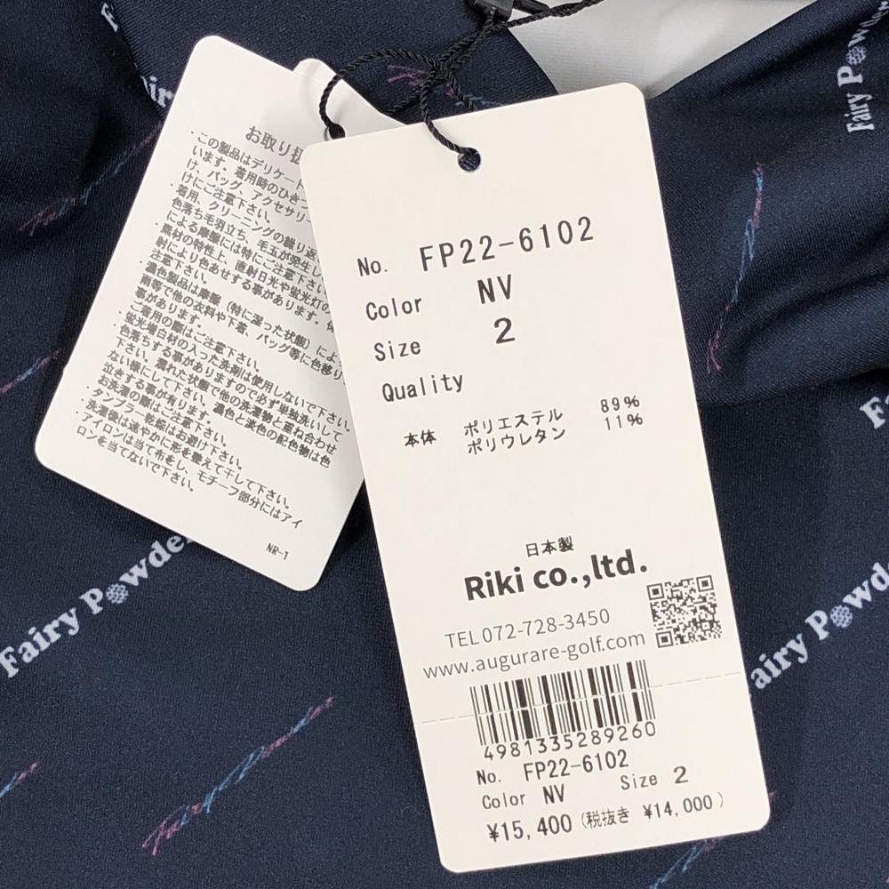 【新品】フェアリーパウダー 長袖ハイネックシャツ ネイビー×白 斜めロゴ総柄 ストレッチ レディース 2(M) ゴルフウェア FAIRY POWDER