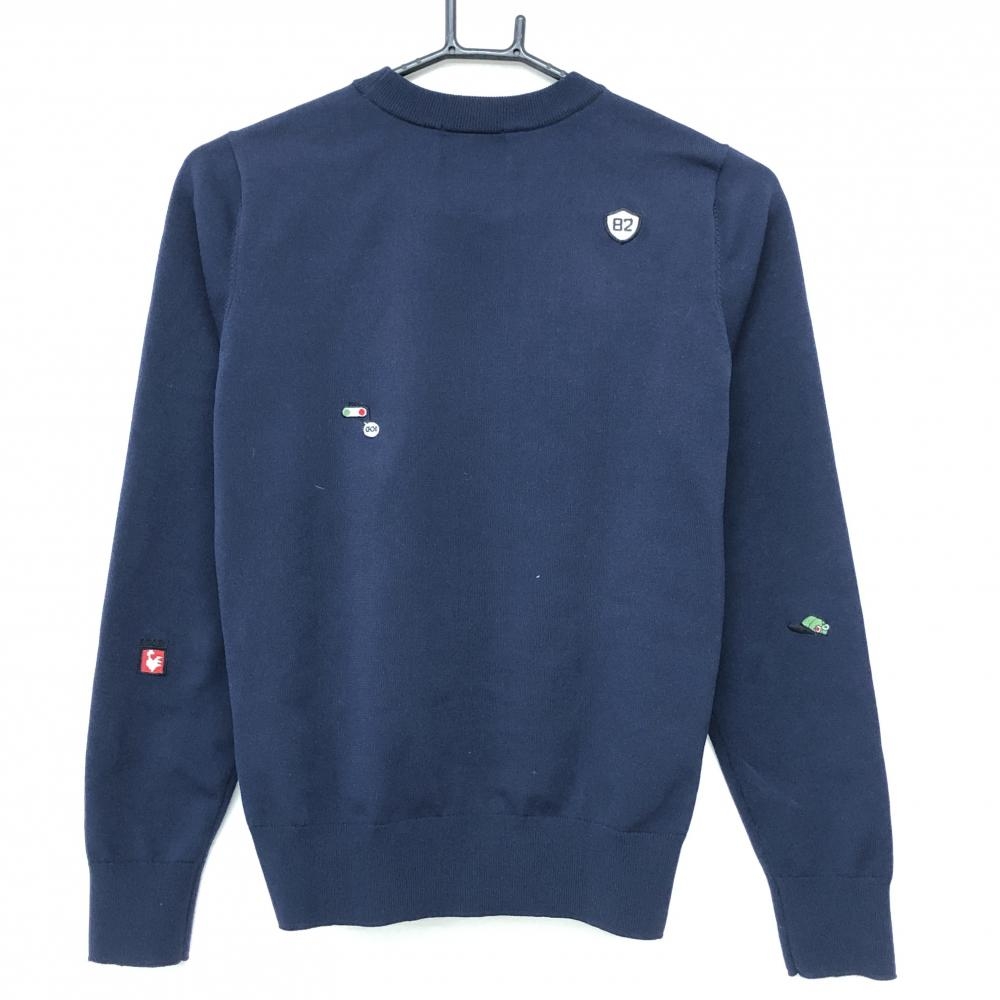 【超美品】ルコックゴルフ セーター ネイビー×マルチカラー 複数ワッペン ニット レディース M ゴルフウェア le coq sportif