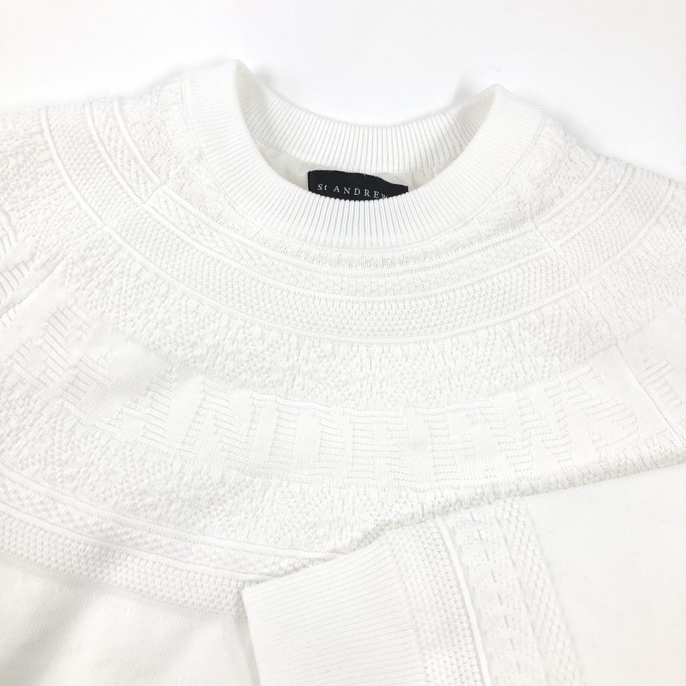 【美品】セントアンドリュース セーター 白 上部総柄編み ロゴ刺しゅう ニット レディース M ゴルフウェア St ANDREWS
