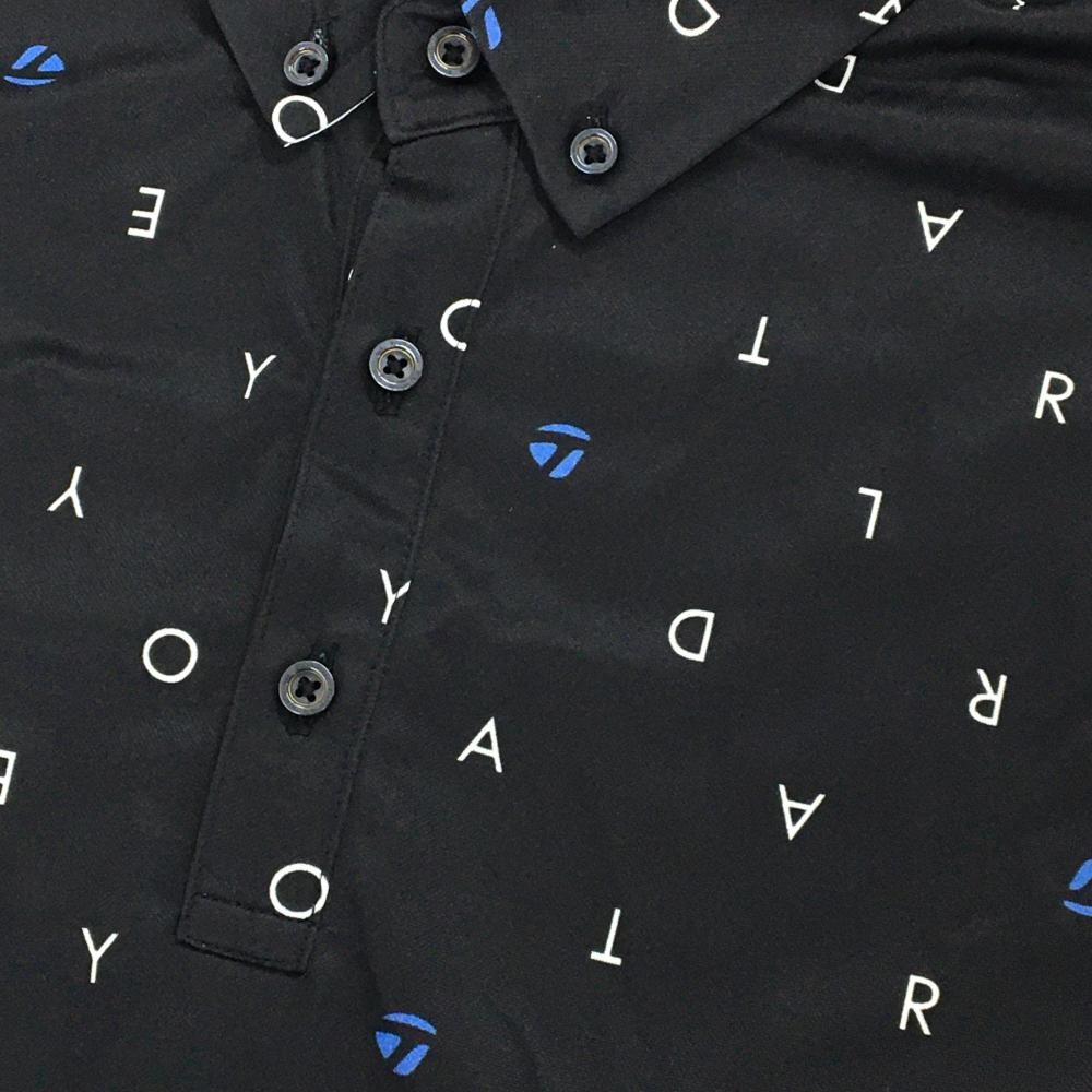 【超美品】テーラーメイド 半袖ポロシャツ 黒×白 ロゴ総柄 ボタンダウン メンズ L ゴルフウェア TaylorMade