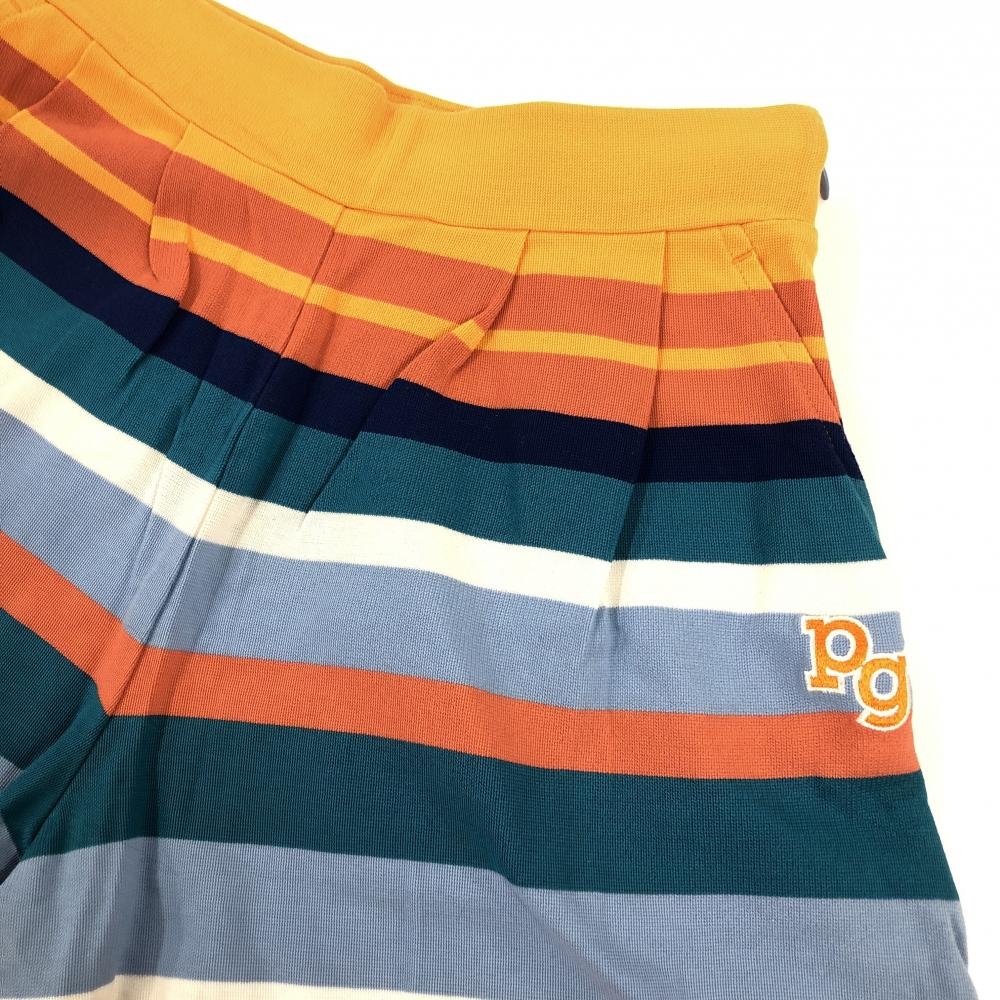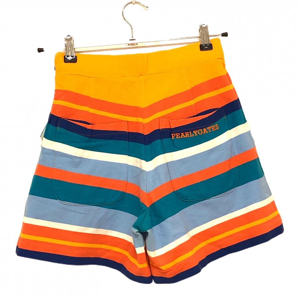 【美品】パーリーゲイツ キュロットスカート オレンジ×マルチカラー ボーダー風 レディース 0(S) ゴルフウェア PEARLY GATES