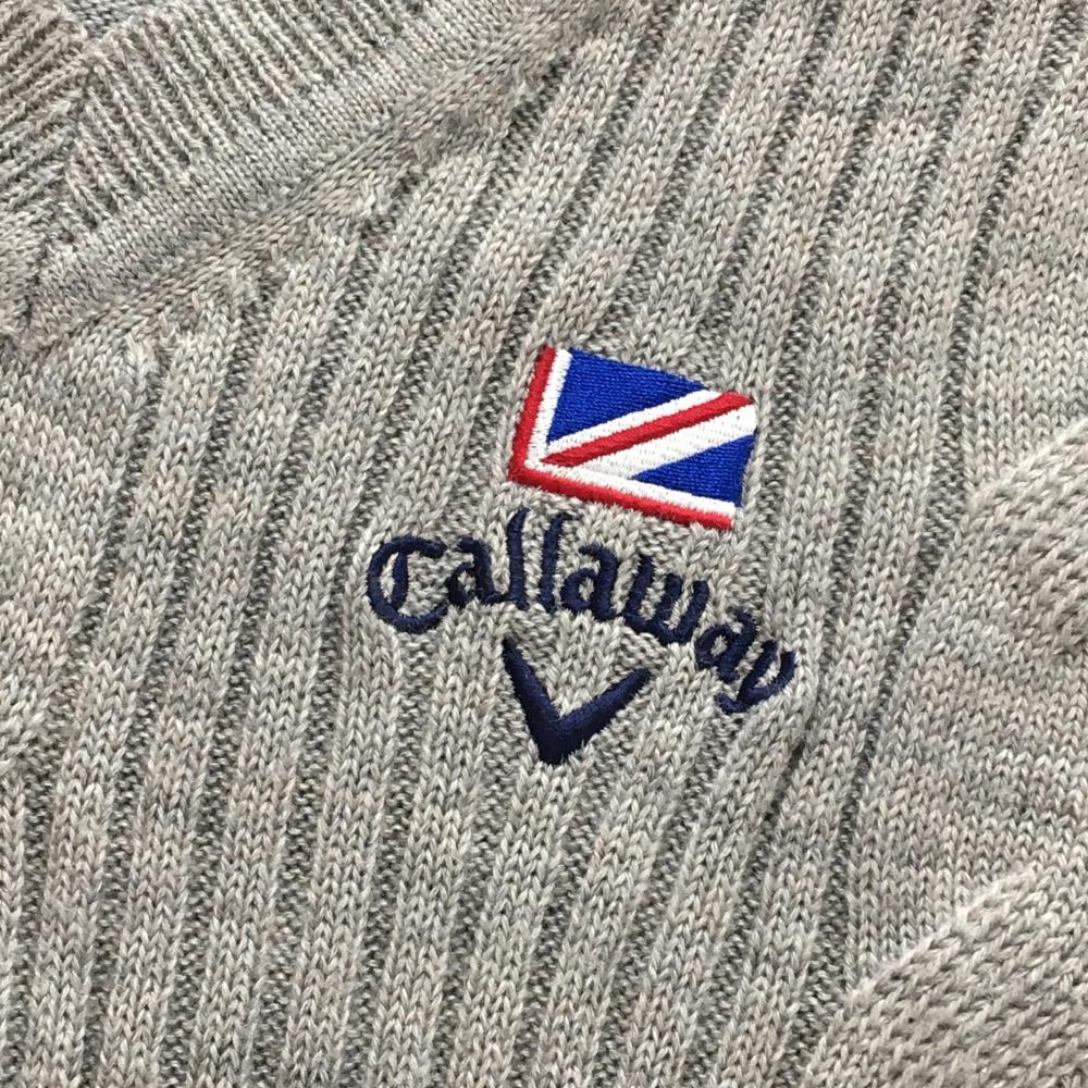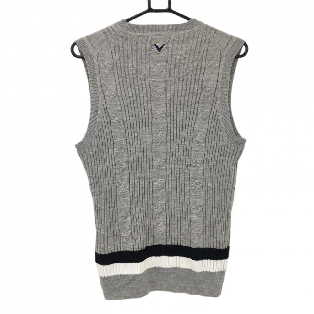 【美品】キャロウェイ ニットベスト グレー ケーブル編み ウール混 メンズ L ゴルフウェア Callaway