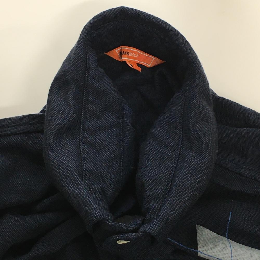 【美品】ビームスゴルフ 長袖ポロシャツ ネイビー×グレー 一部アーガイル ボタンダウン メンズ M ゴルフウェア BEAMS GOLF