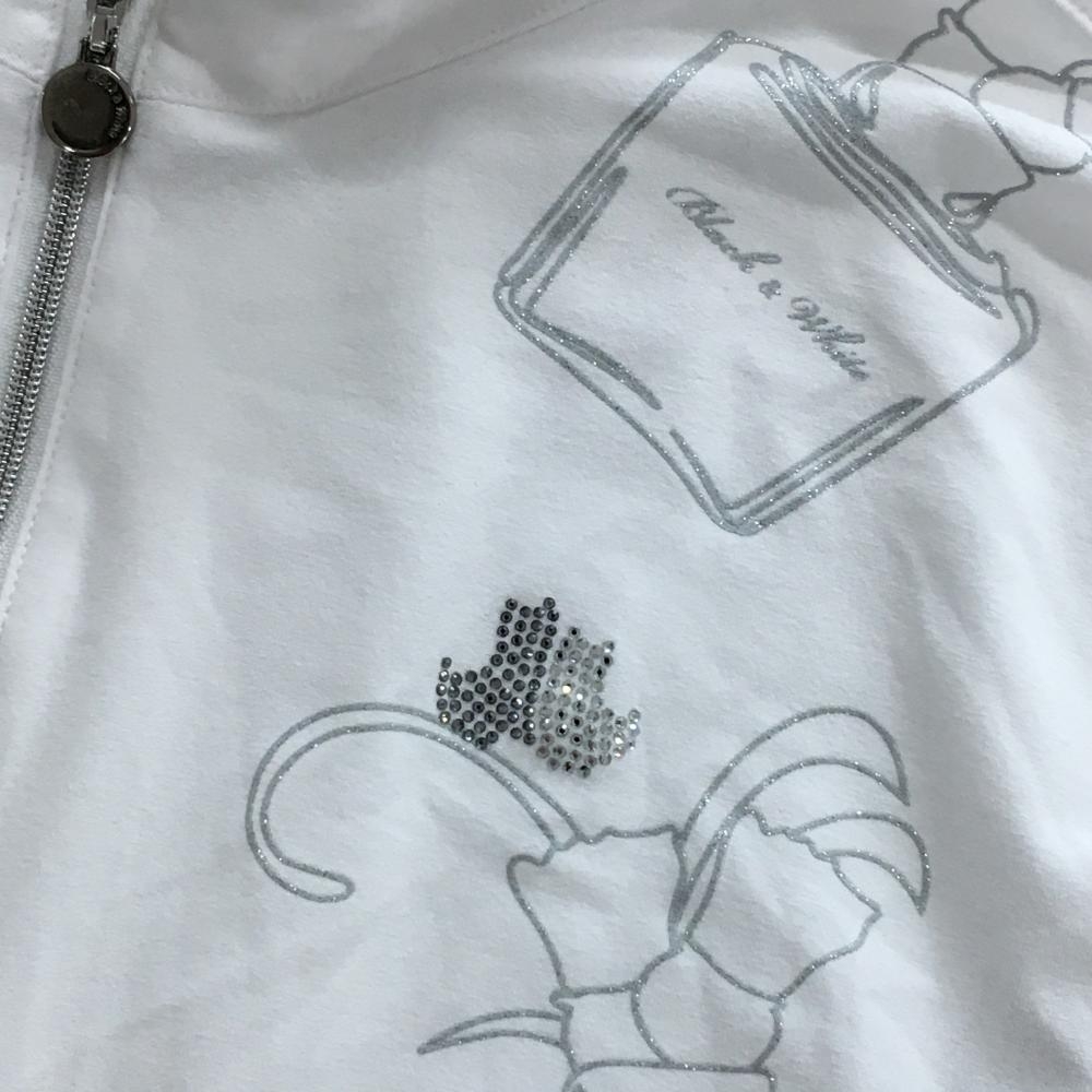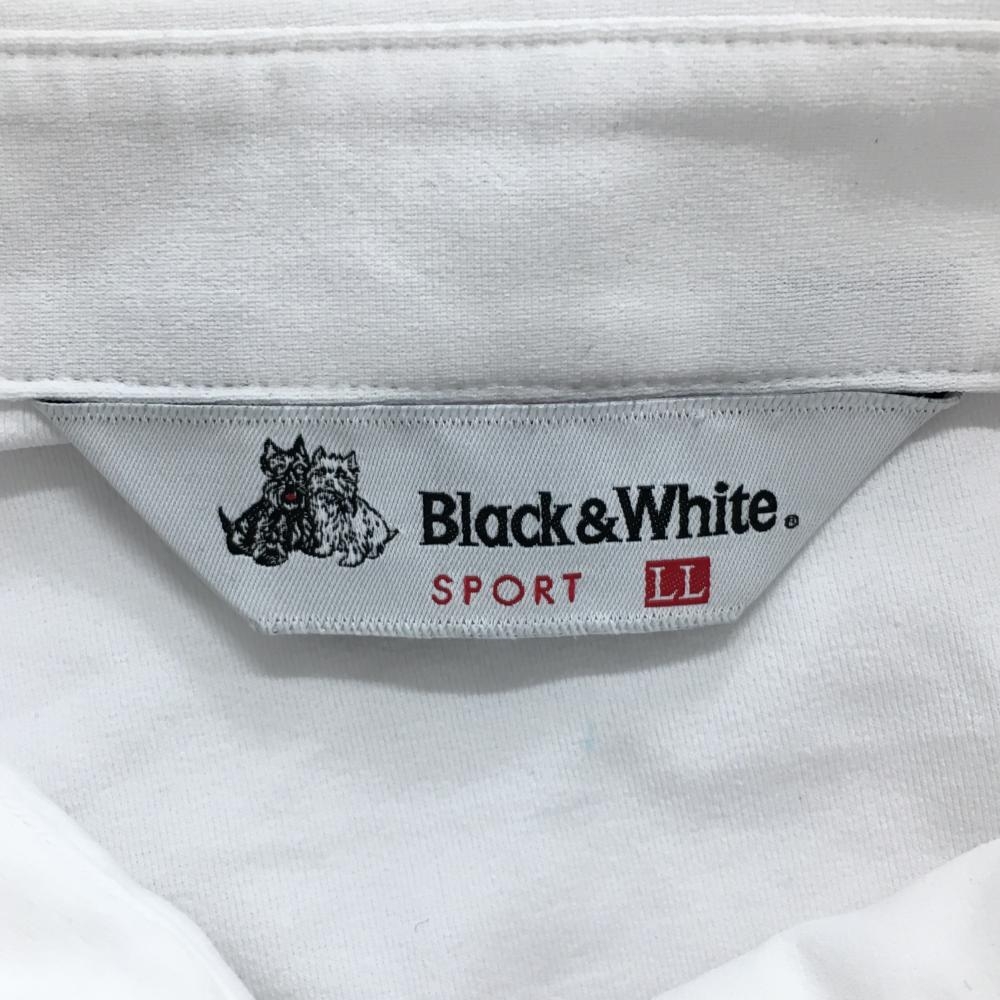 【超美品】ブラックアンドホワイト 長袖ポロシャツ 白×グレー ラメ ロゴラインストーン レディース LL ゴルフウェア Black&White