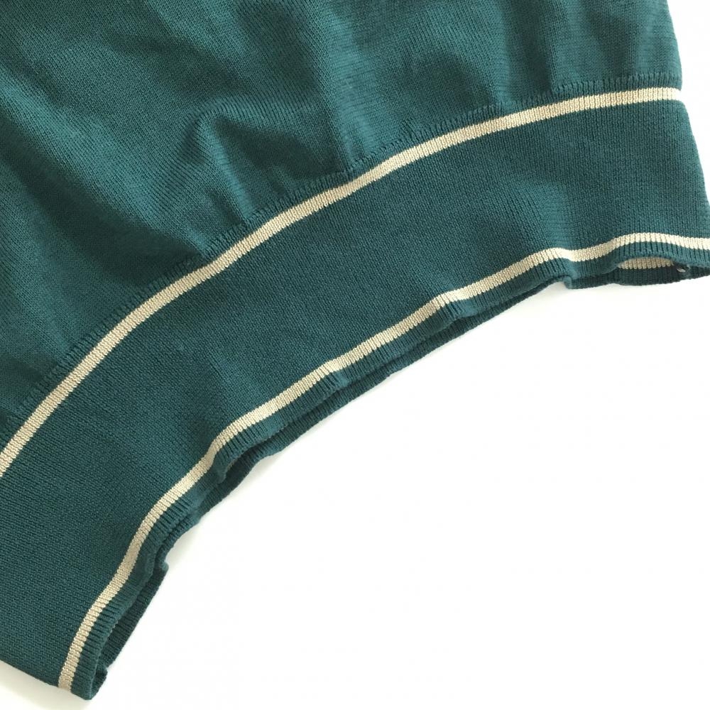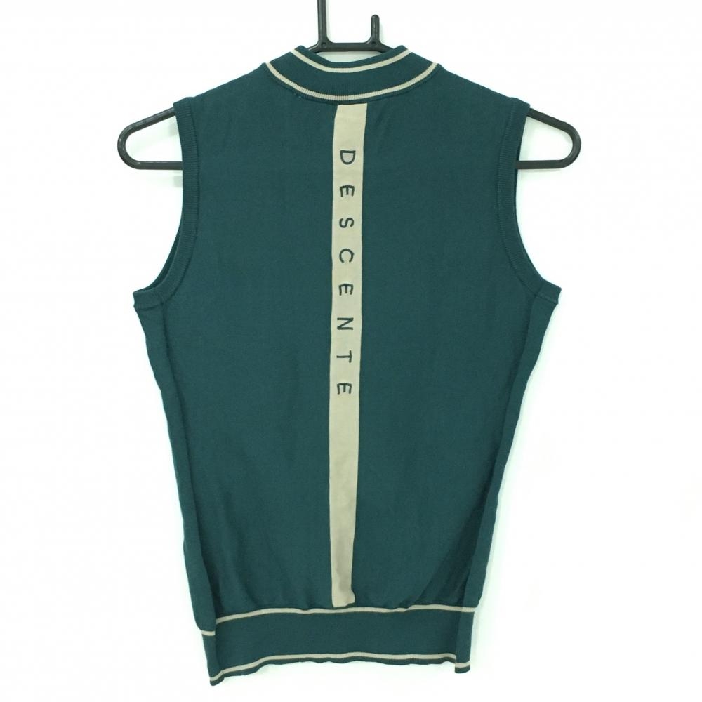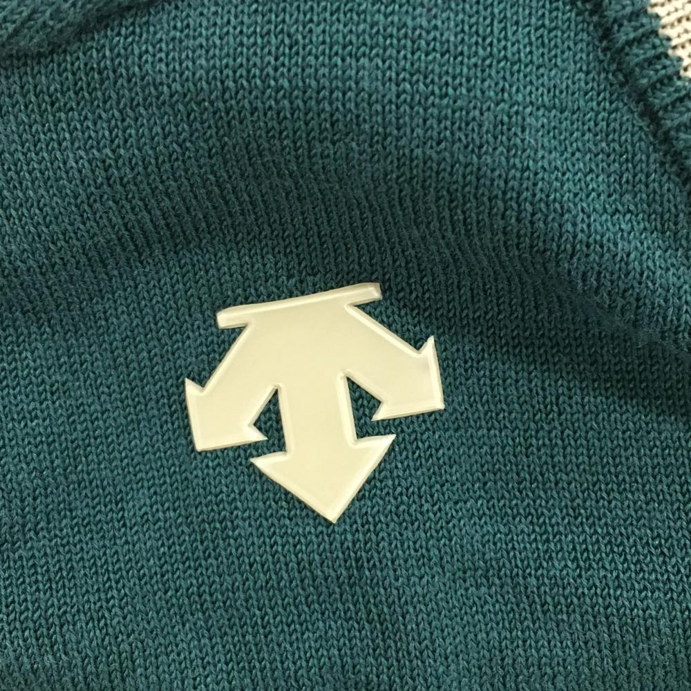 【美品】デサントゴルフ ニットベスト ダークグリーン×ベージュ 肩ロゴ 中田英寿 レディース M ゴルフウェア DESCENTE