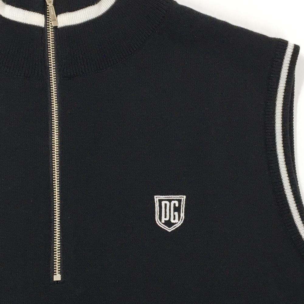 【美品】パーリーゲイツ ニットベスト 黒×白 ハーフジップ メンズ 5(L) ゴルフウェア PEARLY GATES