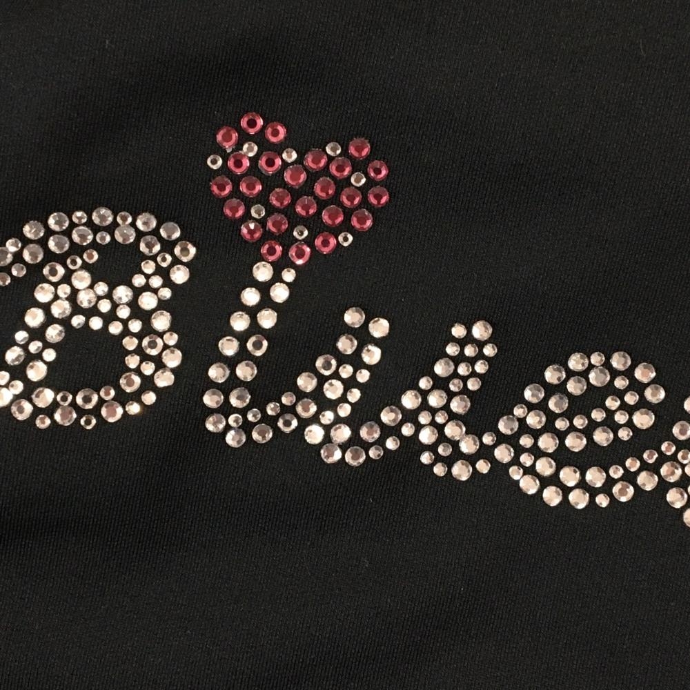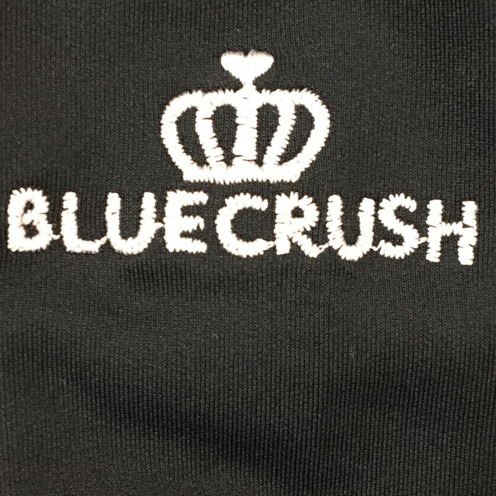 【美品】ブルークラッシュ 長袖ポロシャツ 黒 フリル 裏微起毛 背面ラインストーンロゴ レディース ゴルフウェア BLUE CRUSH