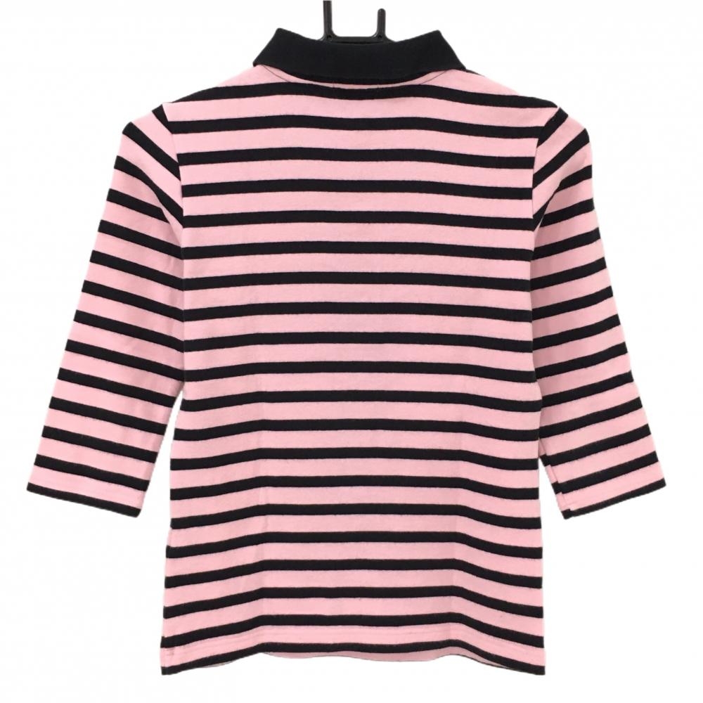 パーリーゲイツ 七分袖ポロシャツ ピンク×黒 ボーダー 微起毛 レディース 1(M) ゴルフウェア PEARLY GATES
