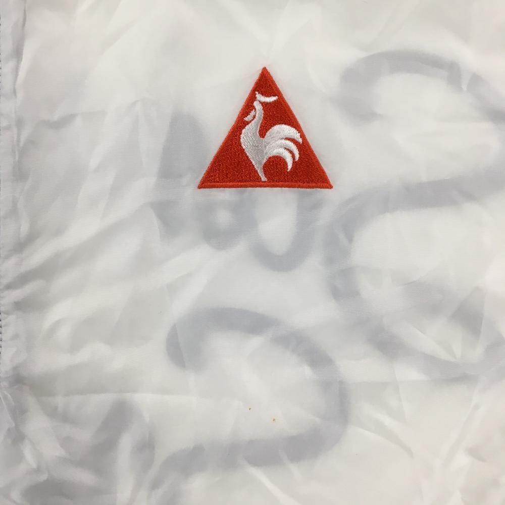 ルコックゴルフ 半袖ブルゾン 白×ブルー ハーフジップ 裾ジップ レディース LL ゴルフウェア le coq sportif