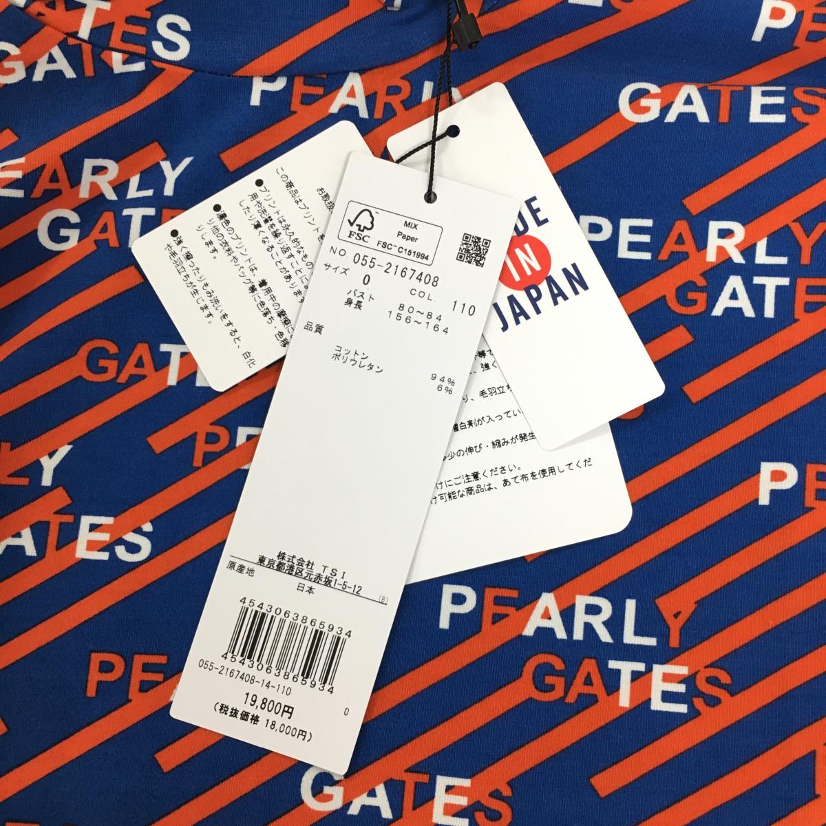 【新品】パーリーゲイツ ノースリーブハイネックシャツ ブルー×オレンジ ロゴ総柄 レディース 0(S) ゴルフウェア PEARLY GATES