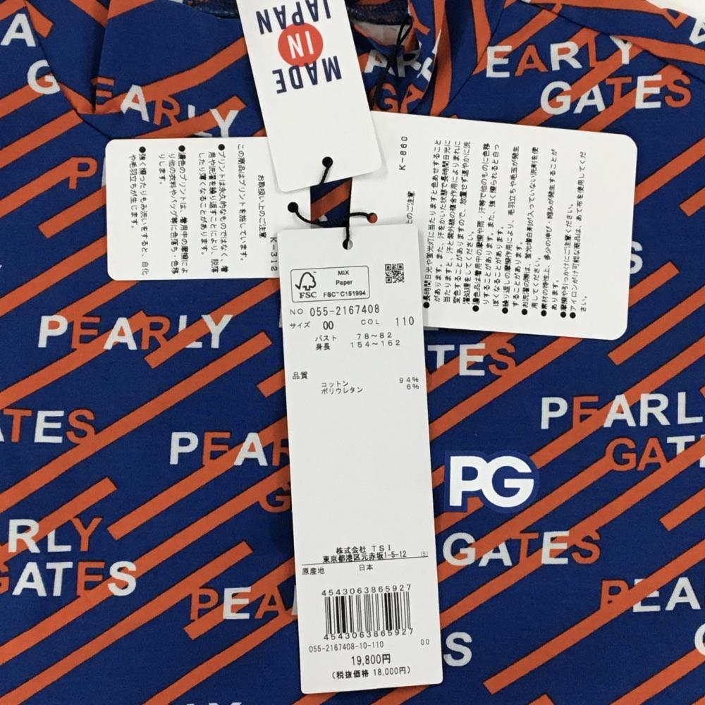 【新品】パーリーゲイツ ノースリーブハイネックシャツ ブルー×オレンジ ロゴ総柄 レディース 00(XS) ゴルフウェア PEARLY GATES