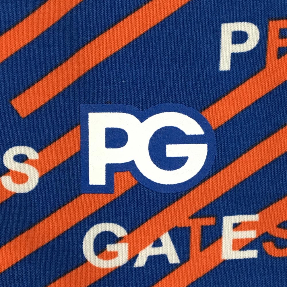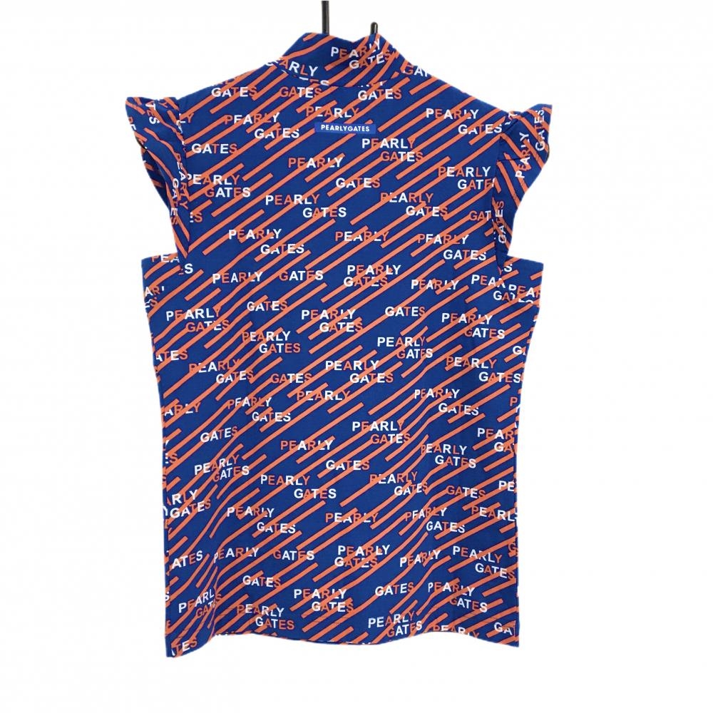 【新品】パーリーゲイツ ノースリーブハイネックシャツ ブルー×オレンジ ロゴ総柄 レディース 00(XS) ゴルフウェア PEARLY GATES