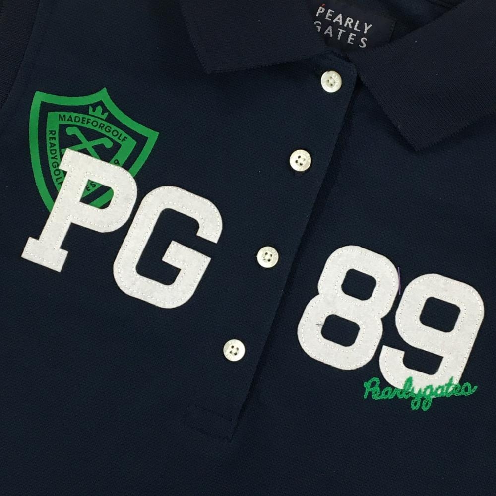 【新品】パーリーゲイツ ノースリーブポロシャツ ネイビー×白 フロントワッペン 吸水 防スケ レディース 0(S) ゴルフウェア PEARLY GATES