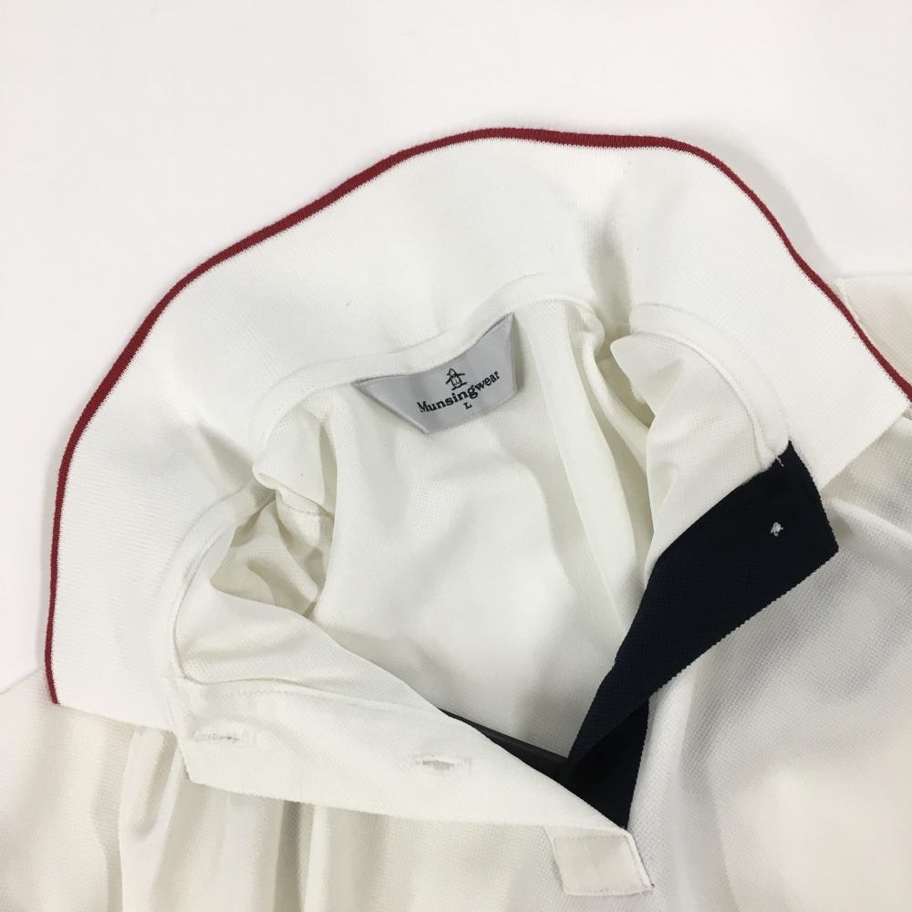 マンシングウェア 半袖ポロシャツ 白×レッド 襟袖口ライン レディース L ゴルフウェア Munsingwear