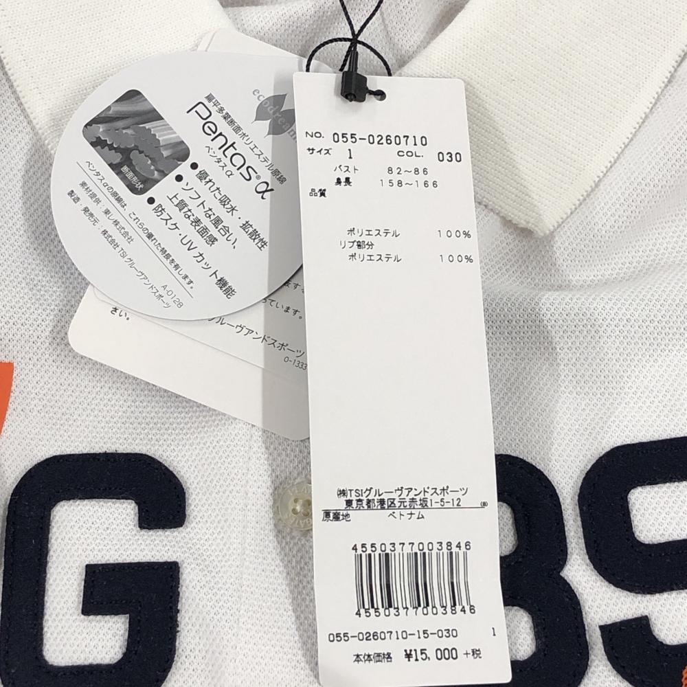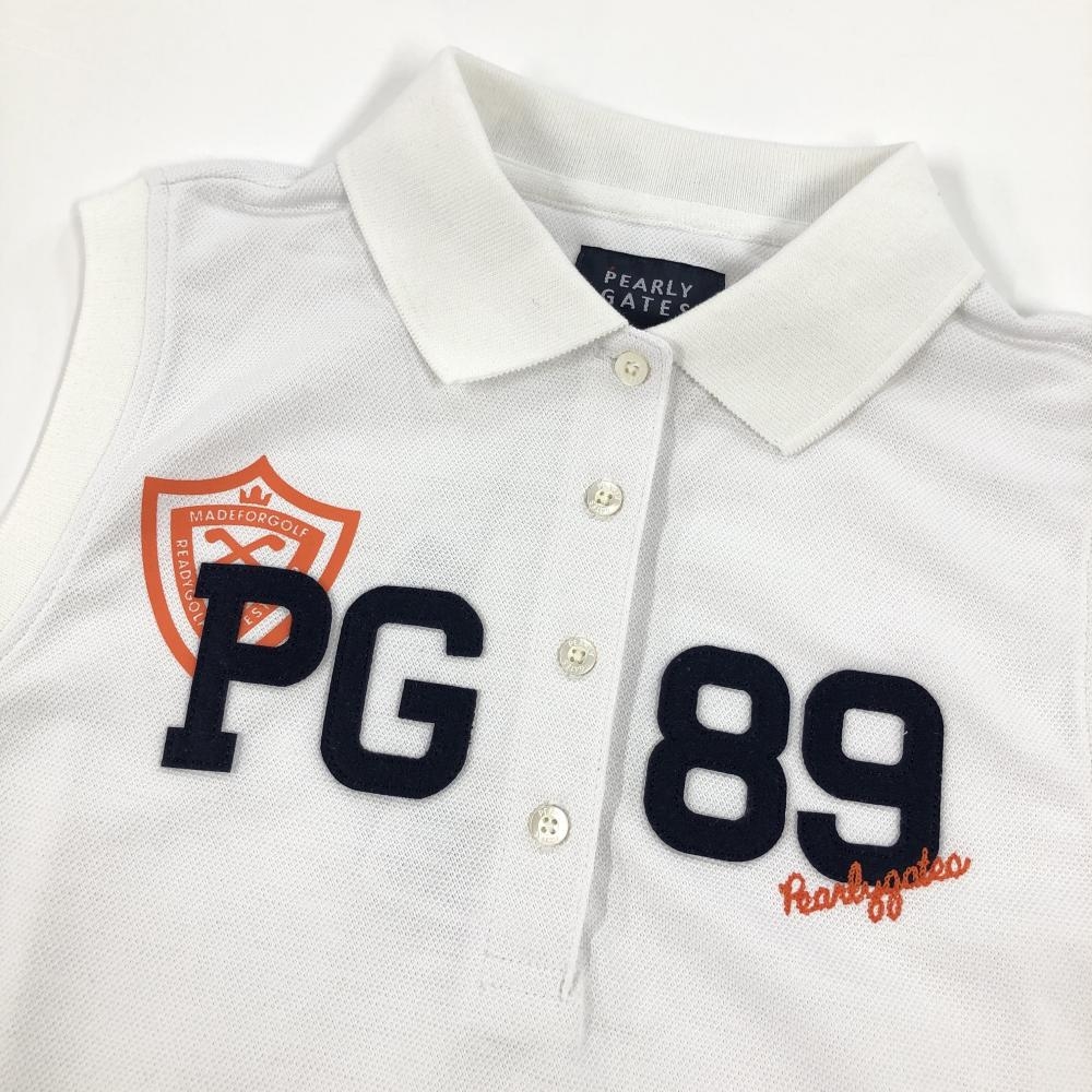 【新品】パーリーゲイツ ノースリーブポロシャツ 白×ネイビー フロントワッペン 吸水 防スケ レディース 1(M) ゴルフウェア PEARLY GATES