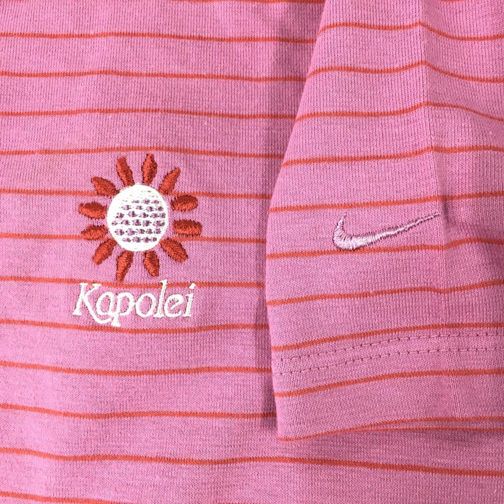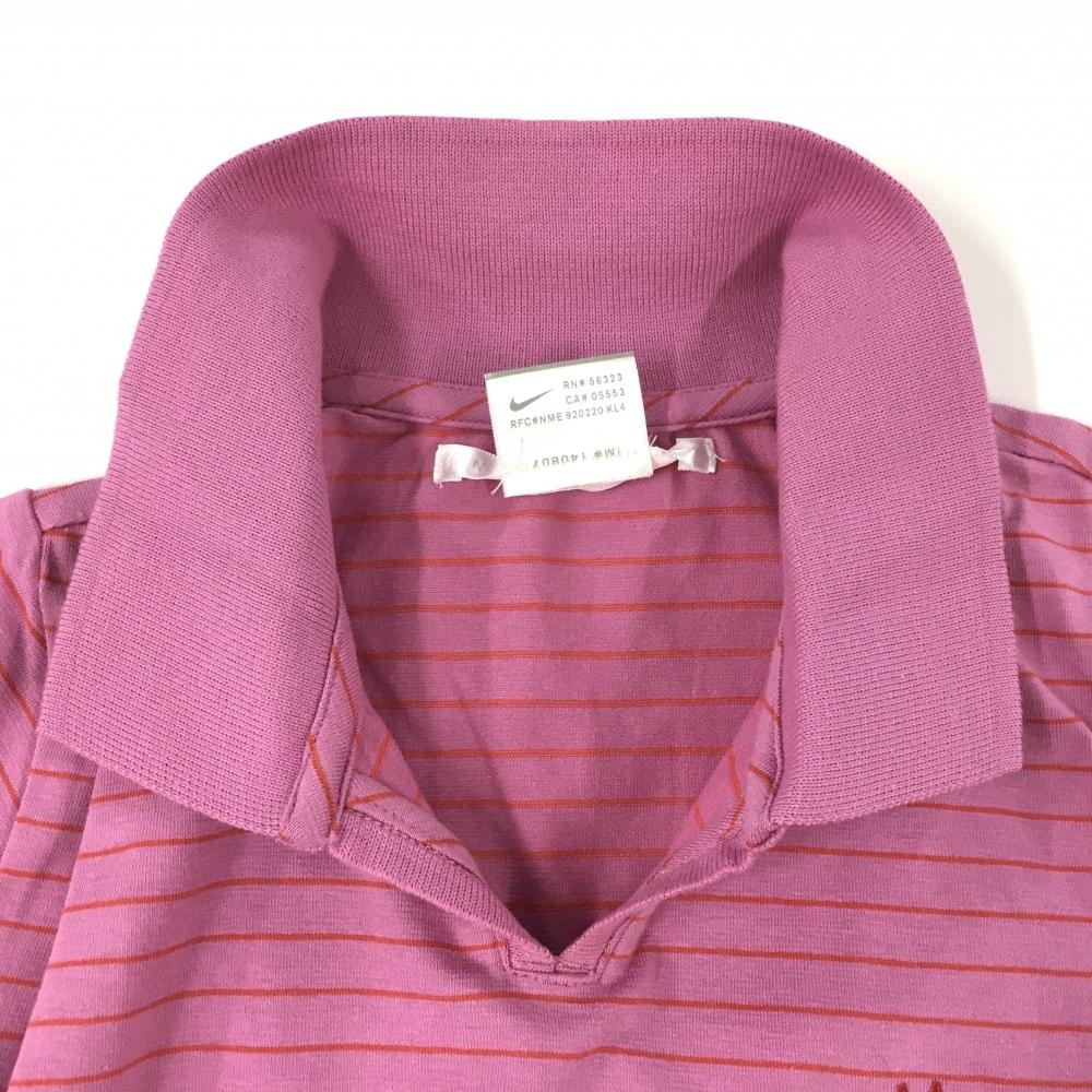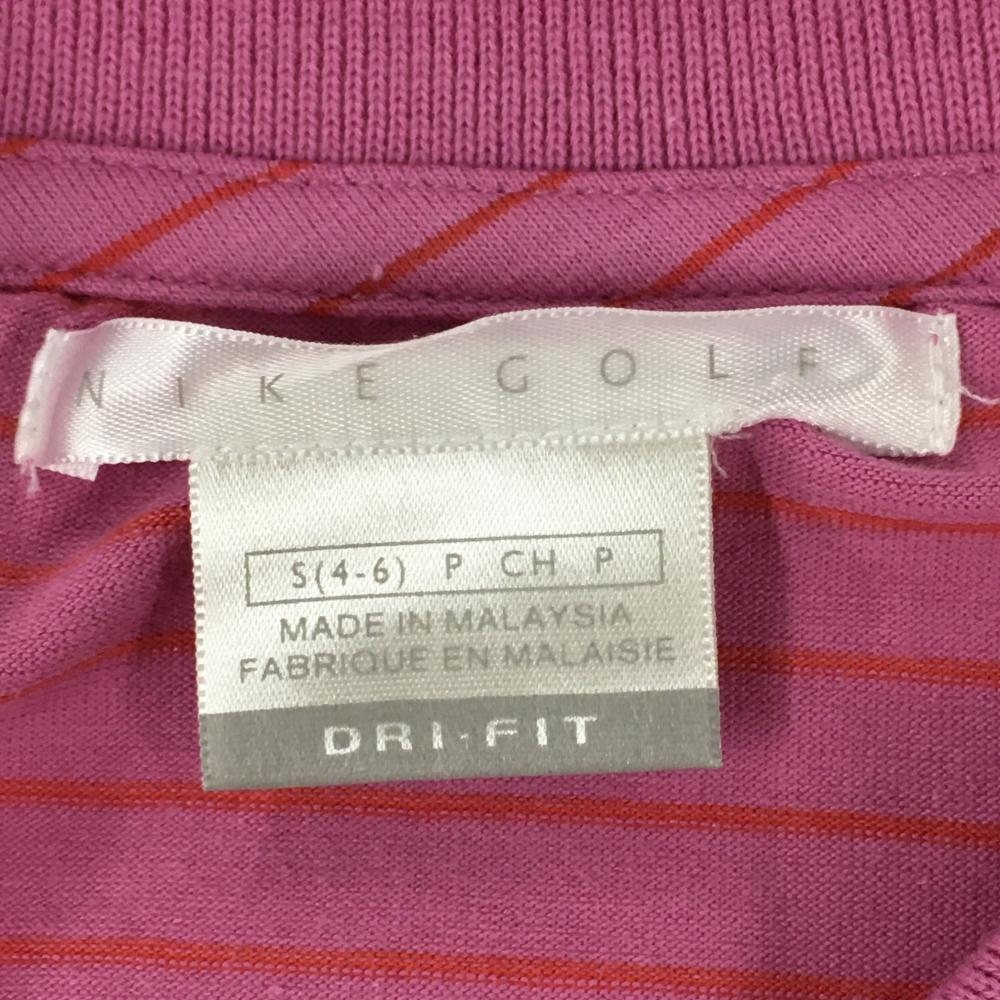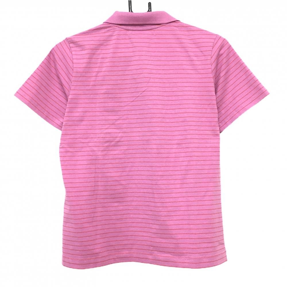 【美品】ナイキゴルフ 半袖スキッパーシャツ ピンク×レッド ボーダー 花刺しゅう レディース S(4-6) P CH P ゴルフウェア NIKE