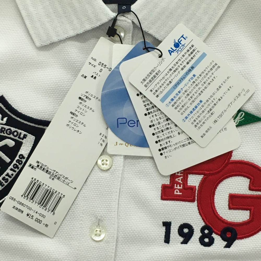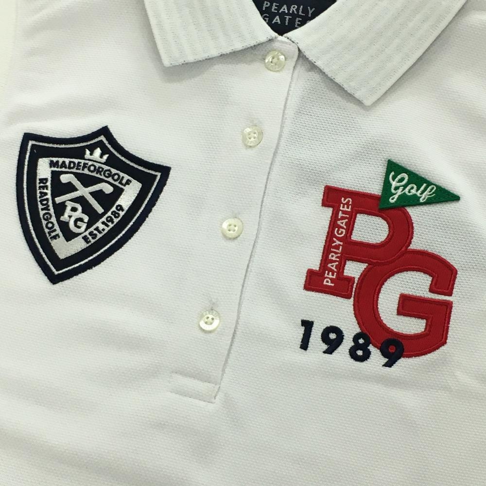 【新品】パーリーゲイツ ノースリーブポロシャツ 白×ネイビー 胸元ロゴ 襟裏ボーダー レディース 0(S) ゴルフウェア PEARLY GATES