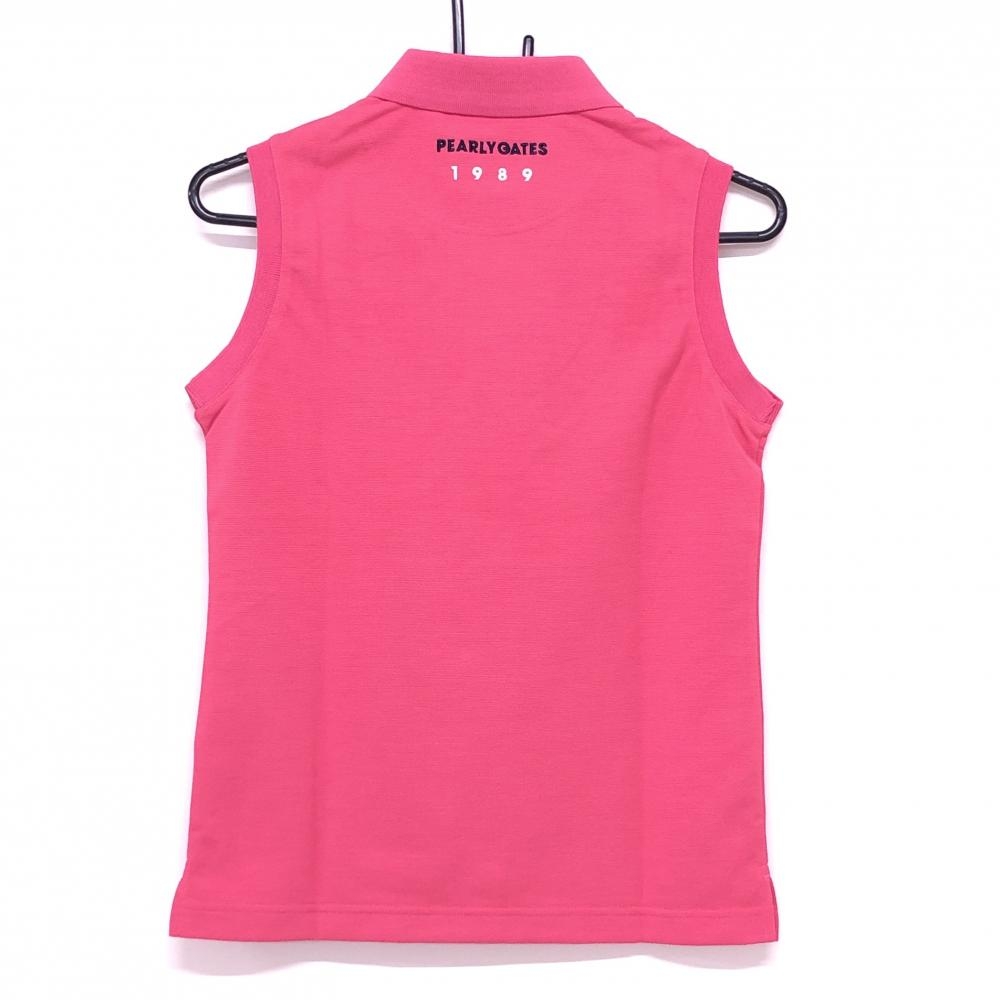 【新品】パーリーゲイツ ノースリーブポロシャツ ピンク×ネイビー 胸元ロゴ レディース 0(S) ゴルフウェア PEARLY GATES