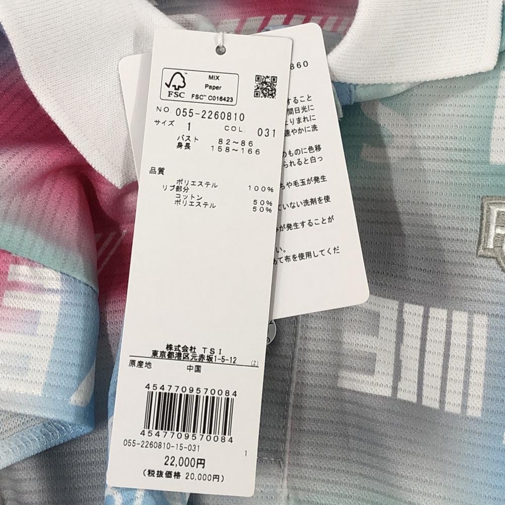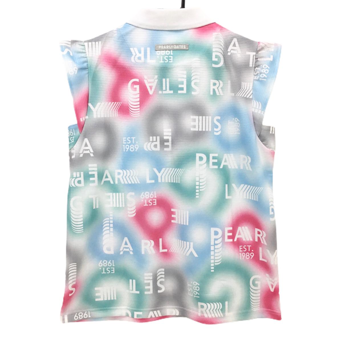 【新品】パーリーゲイツ ノースリーブポロシャツ マルチカラー×白 ロゴ英字総柄 レディース 1(M) ゴルフウェア PEARLY GATES