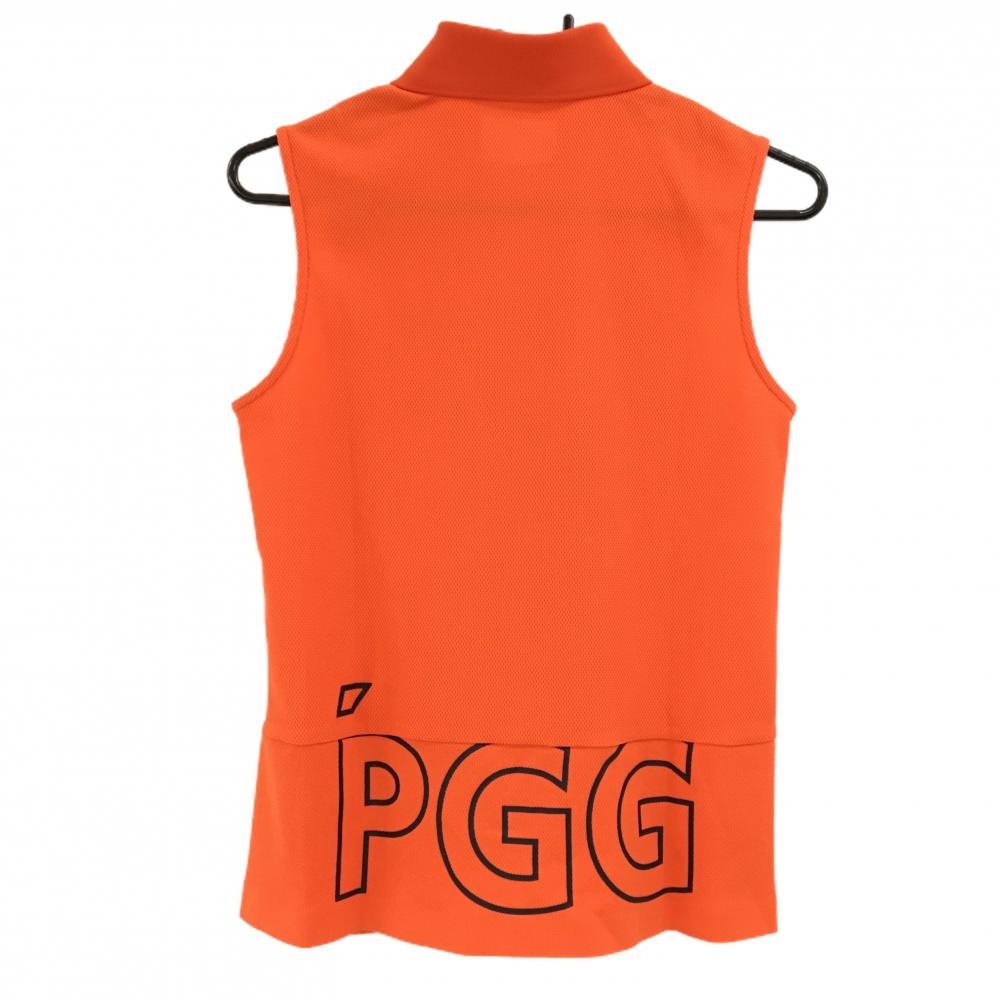 【新品】PGGパーリーゲイツ ノースリーブポロシャツ オレンジ×ネイビー ロゴプリント レディース 0(S) ゴルフウェア PEARLY GATES