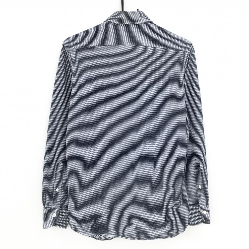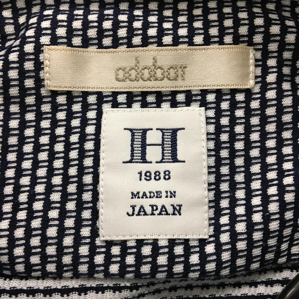 【超美品】アダバット 長袖シャツ 白×黒 総柄 胸ポケット ボタンダウン ロゴ刺しゅう メンズ 44(S) ゴルフウェア adabat
