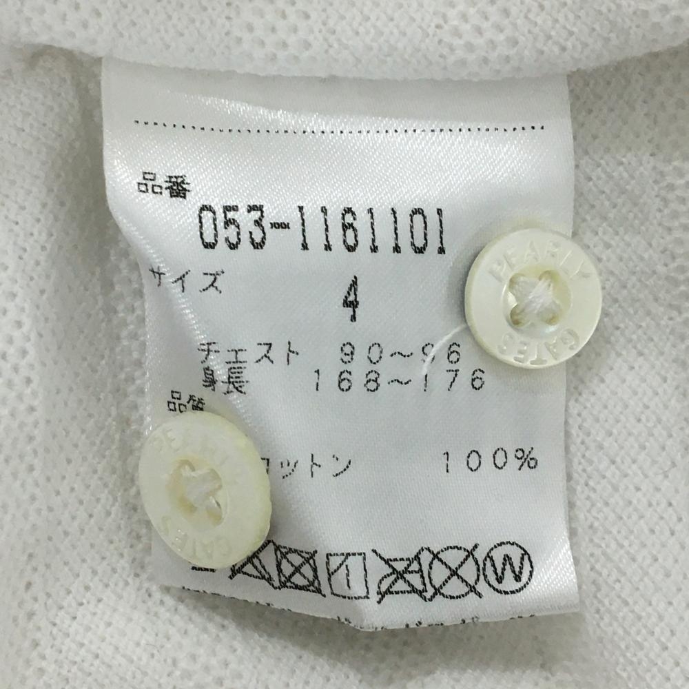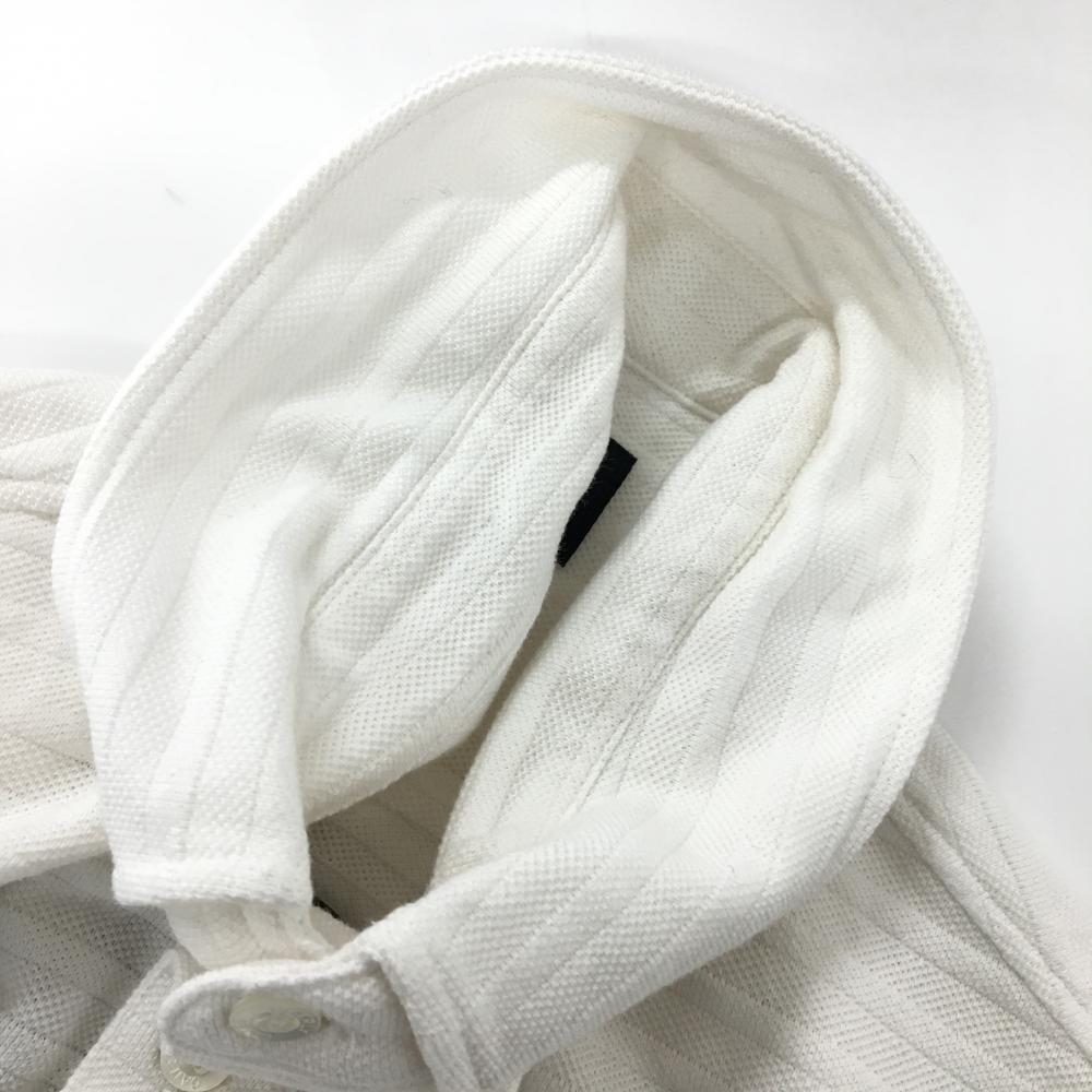 パーリーゲイツ 長袖ポロシャツ 白 ボーダー織生地 胸ポケット ボタンダウン メンズ 4(M) ゴルフウェア PEARLY GATES