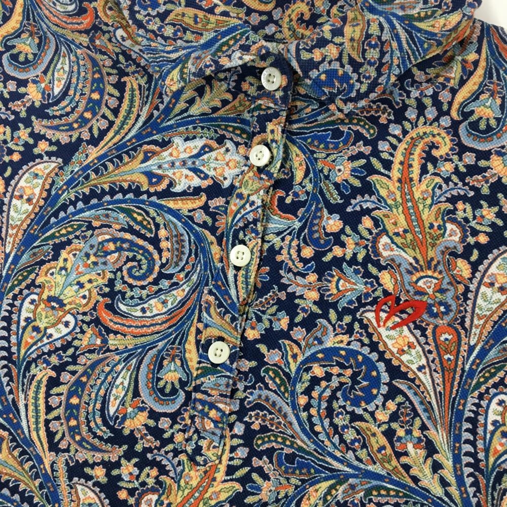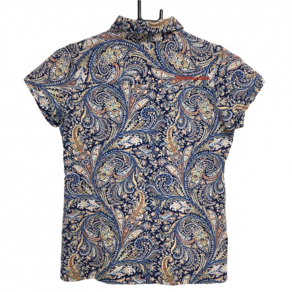 【美品】マスターバニー 半袖ポロシャツ ネイビー×マルチカラー 総柄 レディース 0(S) ゴルフウェア MASTER BUNNY EDITION