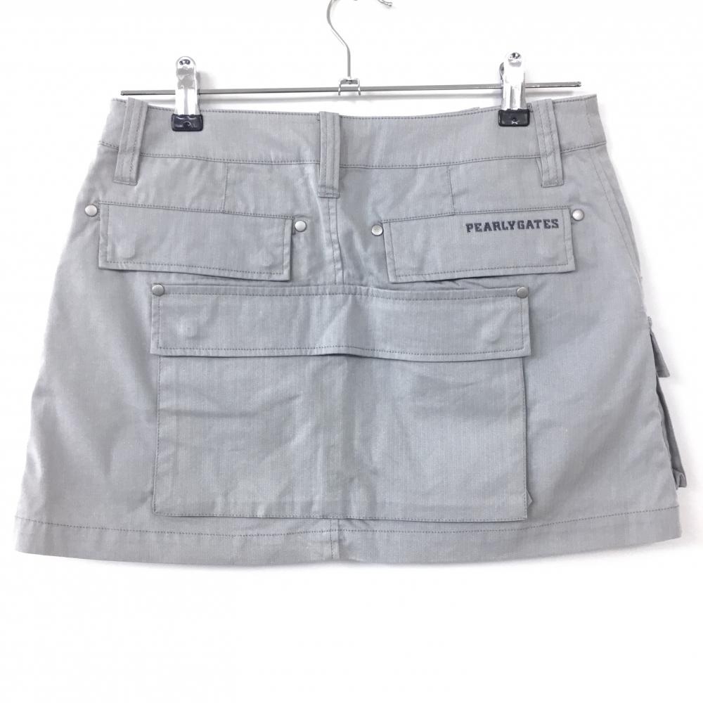 【美品】PEARLY GATES パーリーゲイツ カーゴスカート ライトグレー ヘリンボーン柄 レディース 0(S) ゴルフウェア