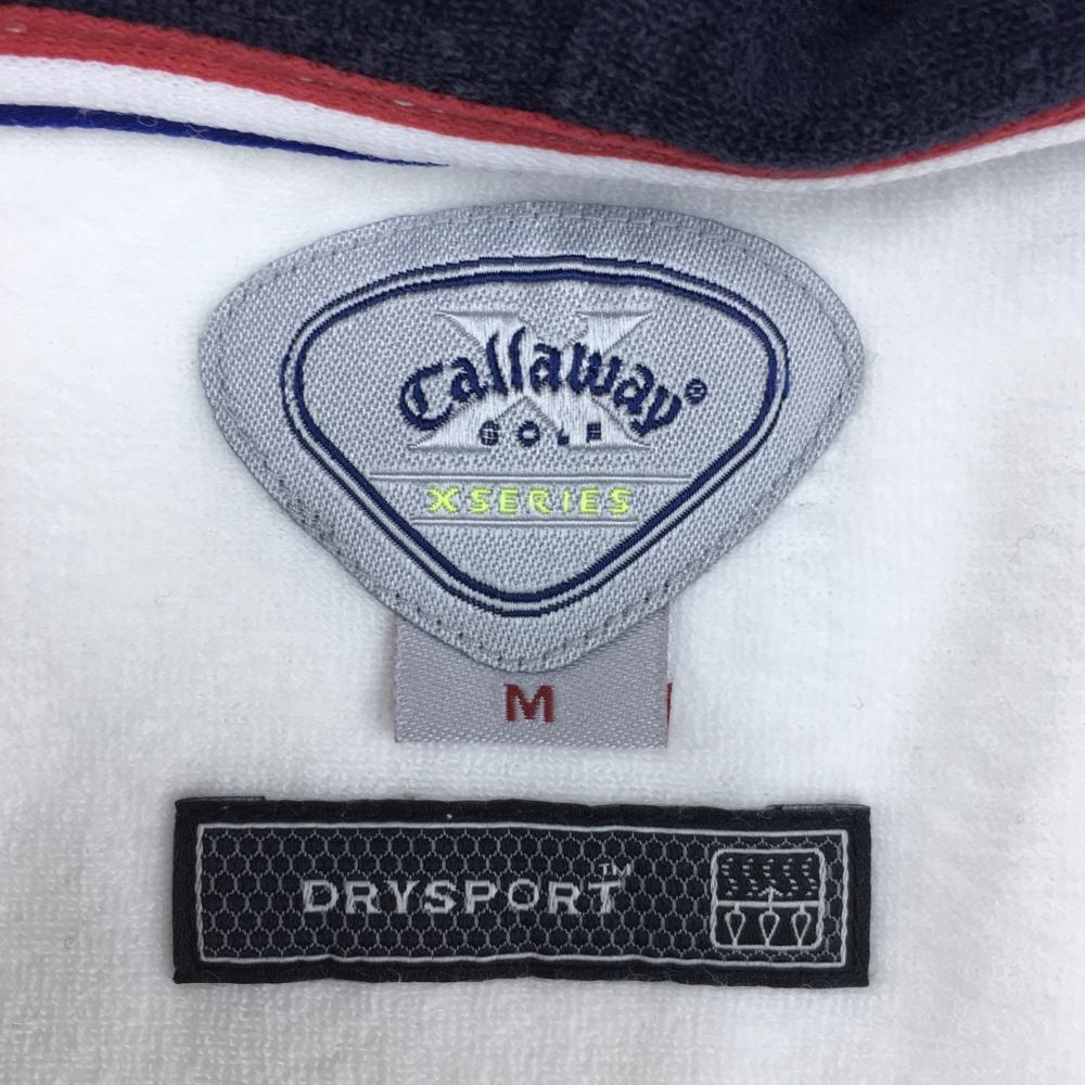 Callaway キャロウェイ 半袖フルジップパーカー 白×ネイビー パイル地 DRYSPORT レディース M ゴルフウェア