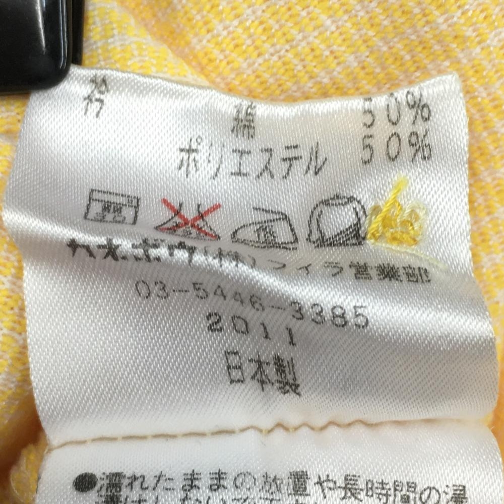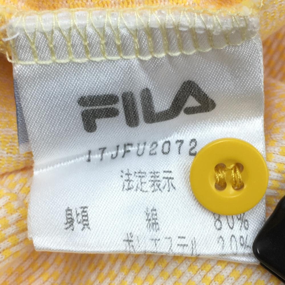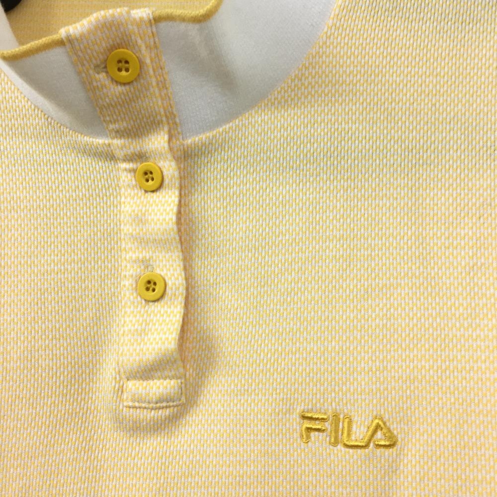 【美品】フィラ 長袖ハイネックシャツ オレンジ×白 織生地 ロゴ刺しゅう レディース L ゴルフウェア FILA GOLF
