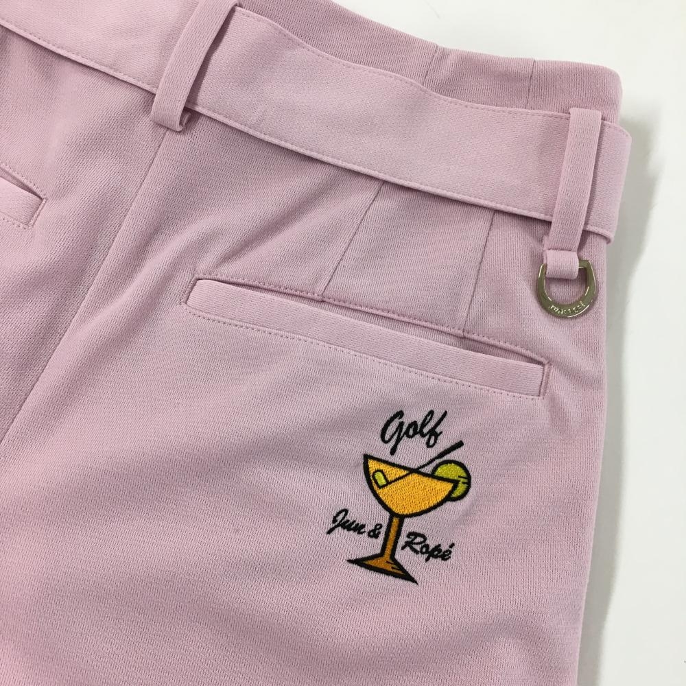 【超美品】ジュンアンドロペ キュロットスカート ピンク カクテルグラス刺しゅう 共布ベルト付き レディース S ゴルフウェア JUN&ROPE
