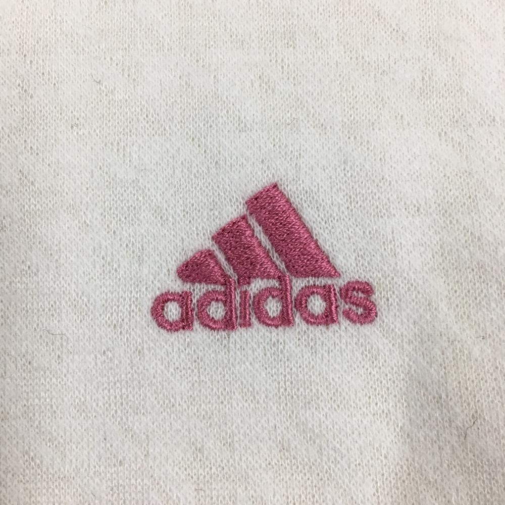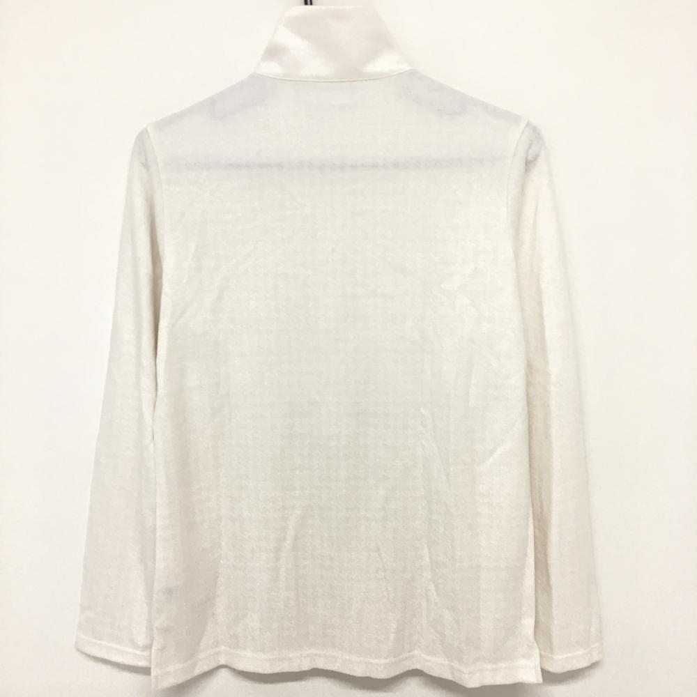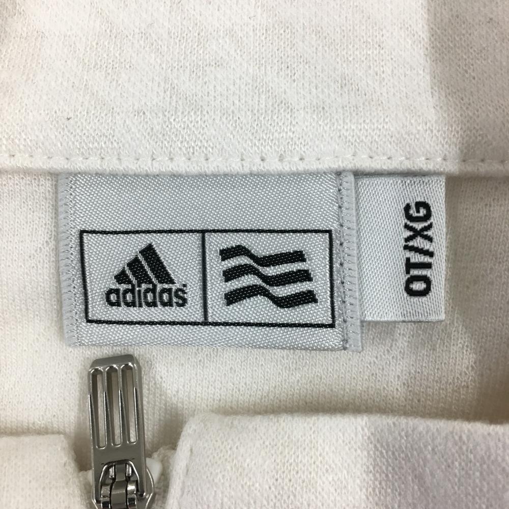【美品】アディダス 長袖ハイネックシャツ 白 総柄織生地 アクリル混 ハーフジップ レディース OT/XG ゴルフウェア adidas