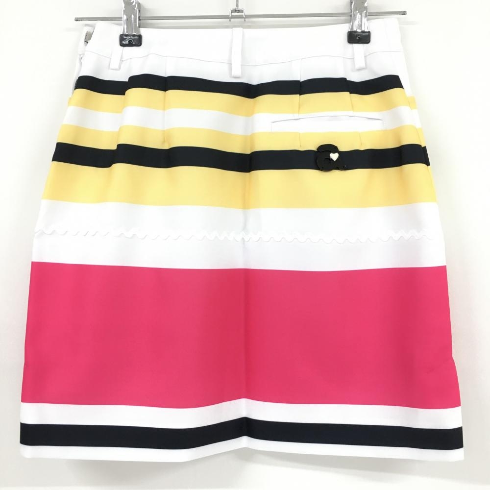 アルチビオ スカート 白×ピンク ランダムボーダー 裏地付 レディース 36 ゴルフウェア archivio