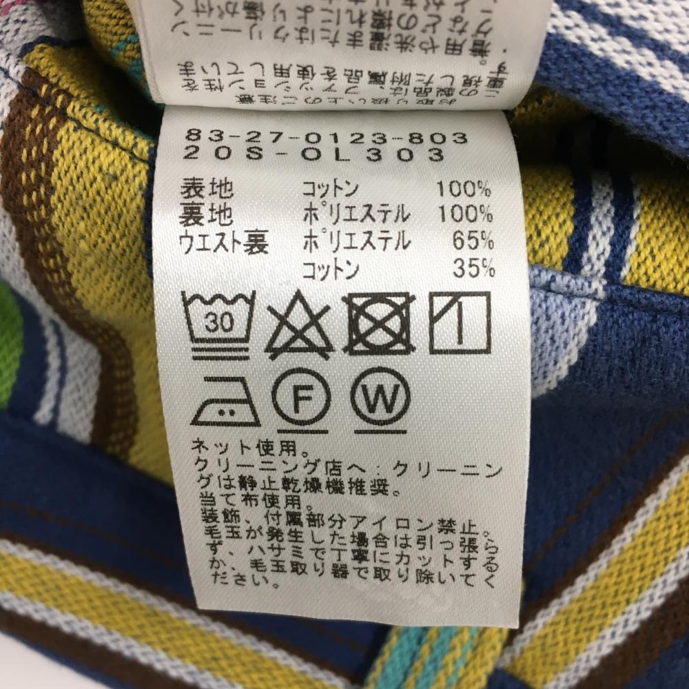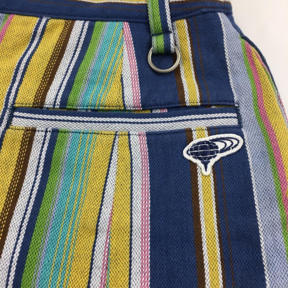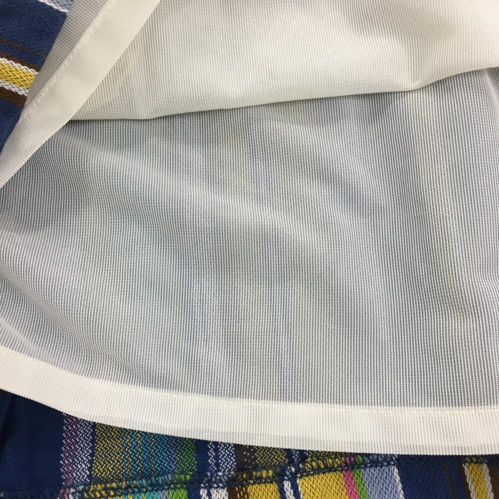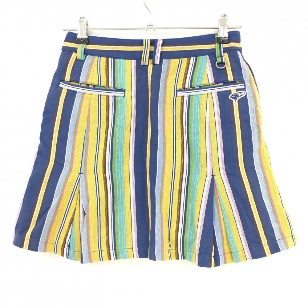 【美品】ビームスゴルフ スカート ブルー×イエロー ストライプ 裏地付き レディース S ゴルフウェア BEAMS GOLF