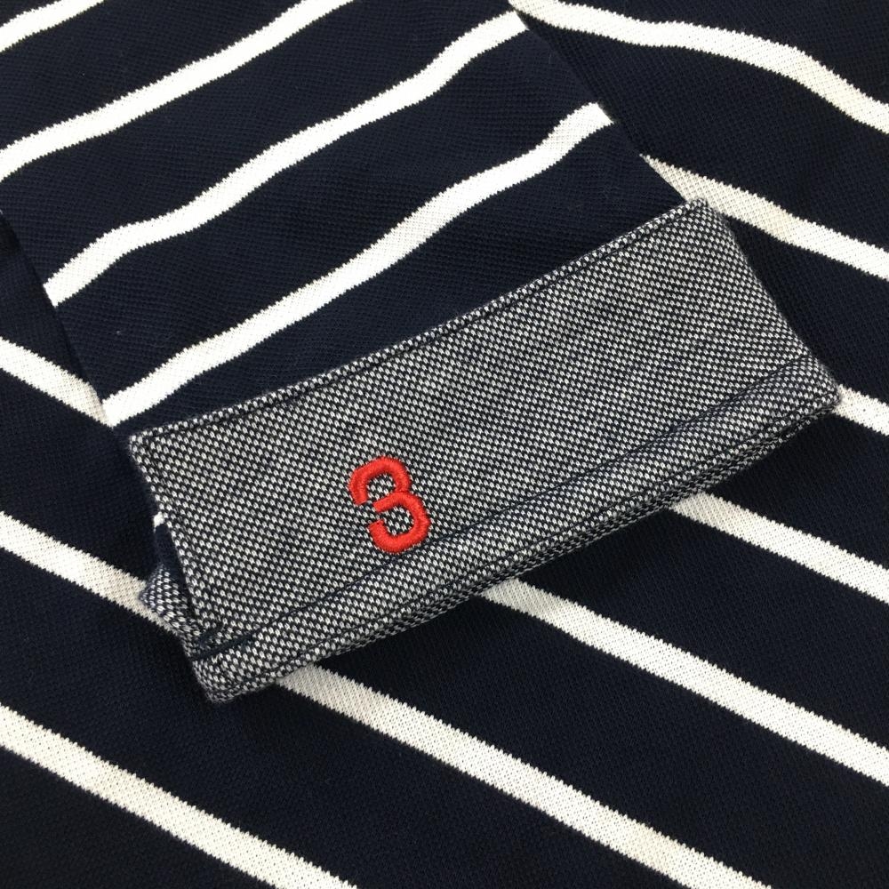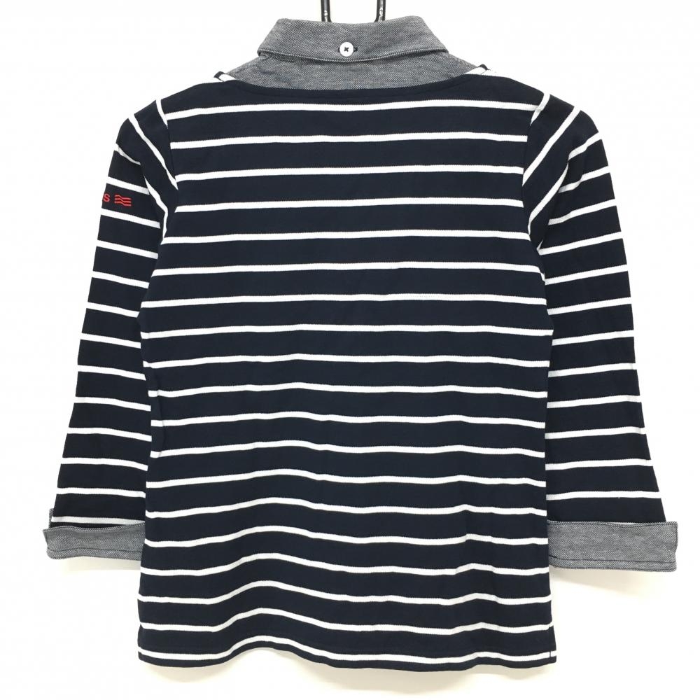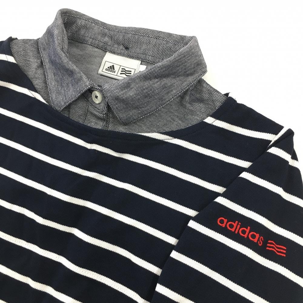 【超美品】アディダス 七分袖ポロシャツ ネイビー×白 ボーダー 重ね着風 レディース S ゴルフウェア adidas