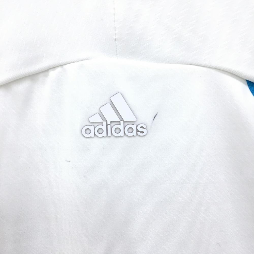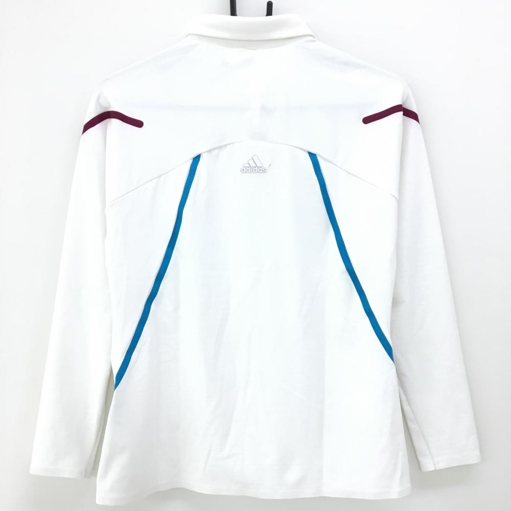【超美品】アディダス 長袖ポロシャツ 白×パープル 総柄織生地 ナイロン71% ストレッチ レディース OT ゴルフウェア adidas