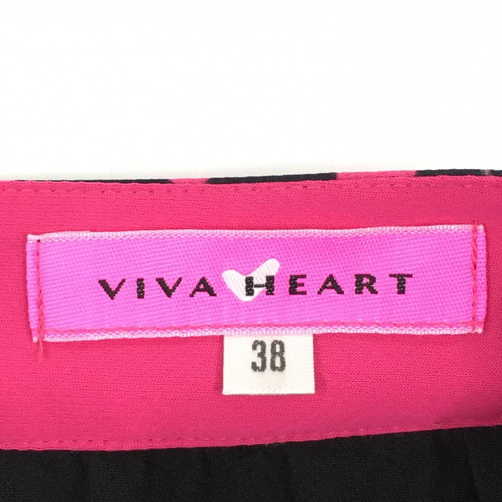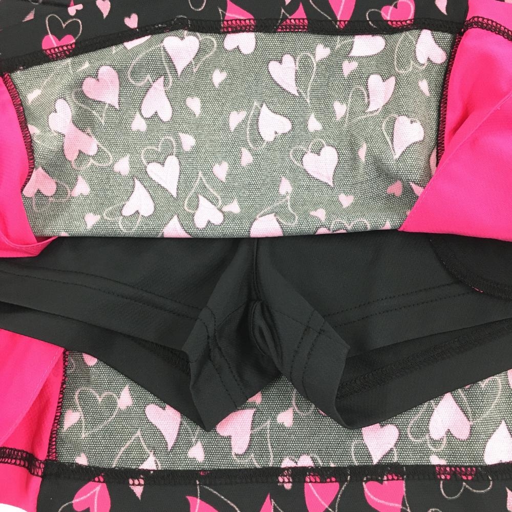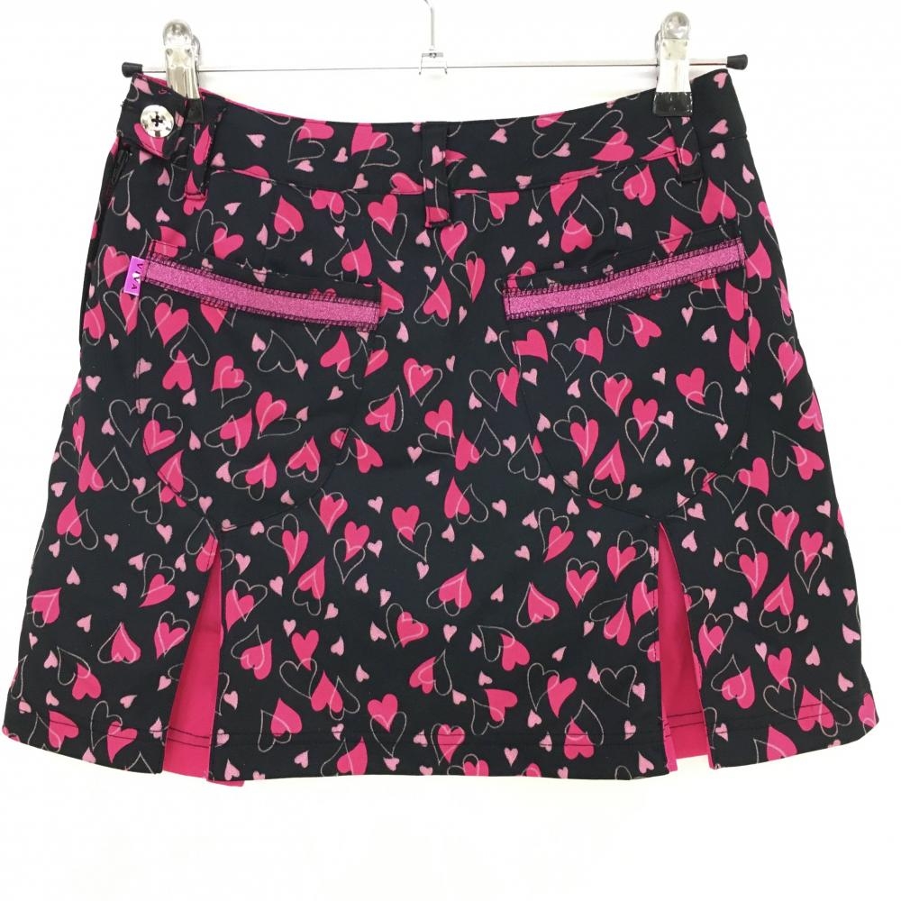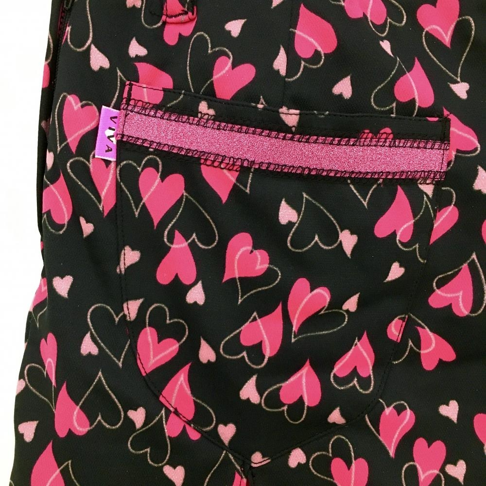 【超美品】ビバハート スカート 黒×ピンク ハート 総柄 内側インナーパンツ レディース 38 ゴルフウェア VIVA HEART