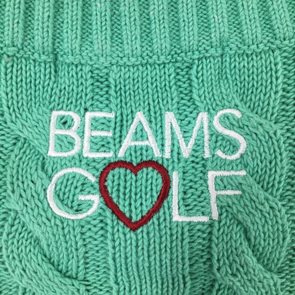 ビームスゴルフ セーター ミントグリーン ケーブル編み 綿100% 肩ボタン ニット レディース M ゴルフウェア BEAMS GOLF