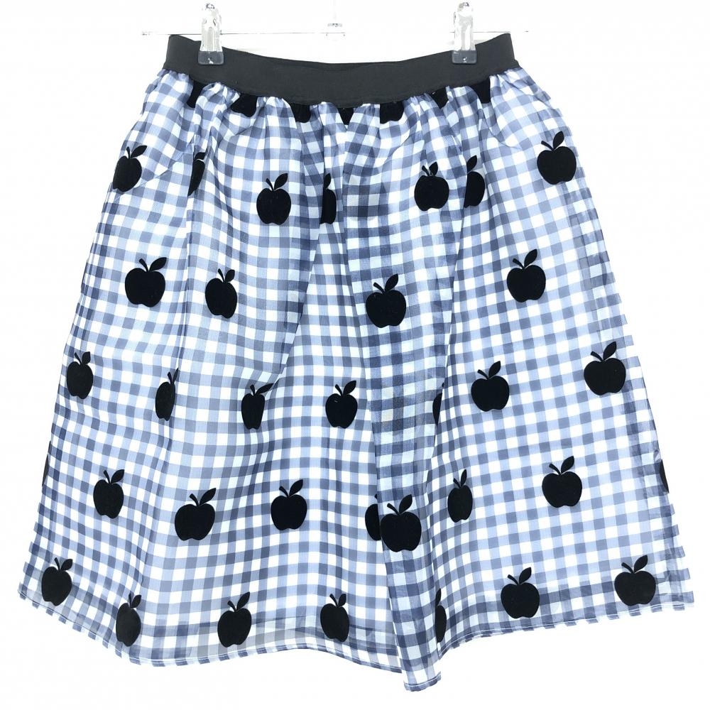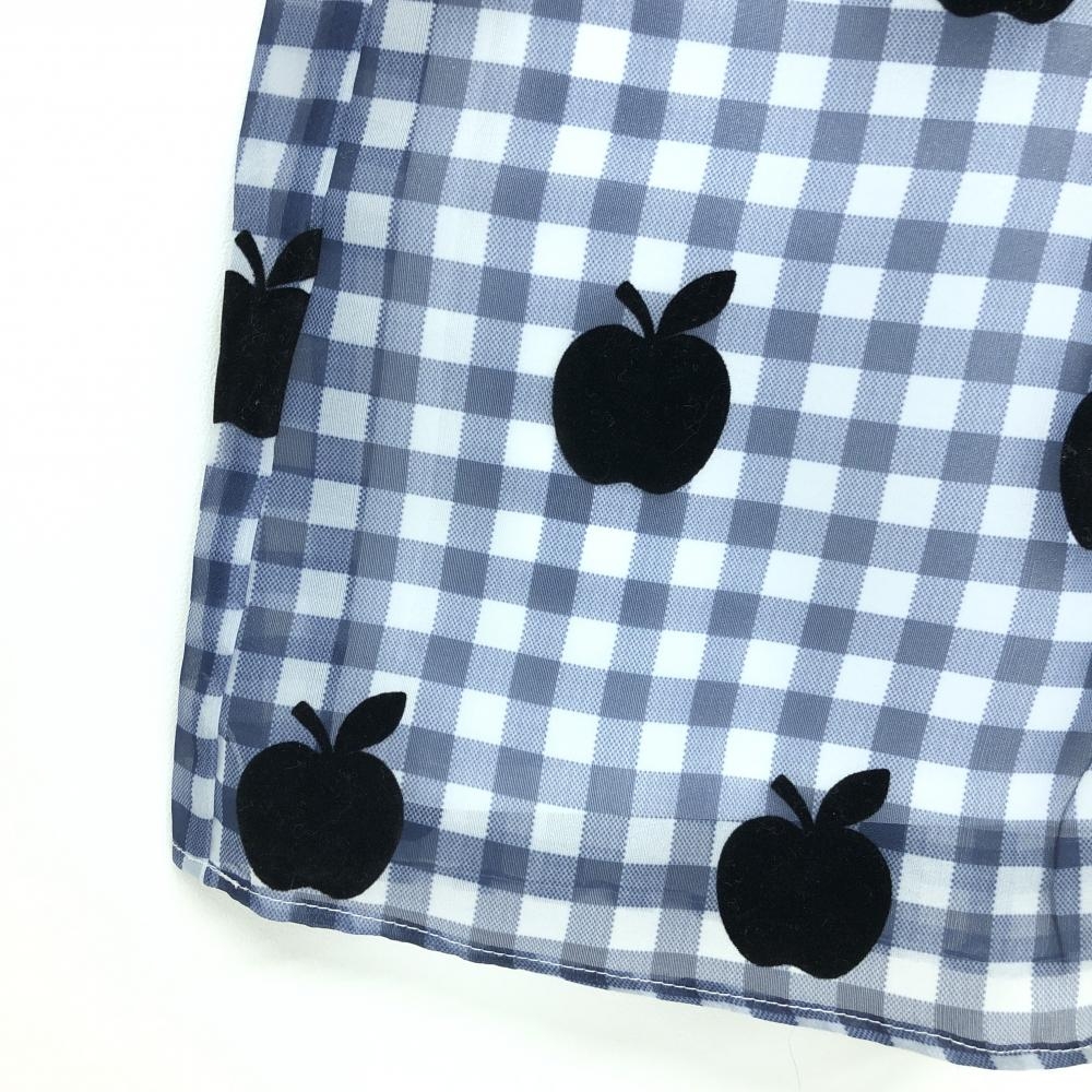 【超美品】パーリーゲイツ フレアスカート ネイビー×白 チェック×リンゴ 透け感 レディース 0(S) ゴルフウェア PEARLY GATES