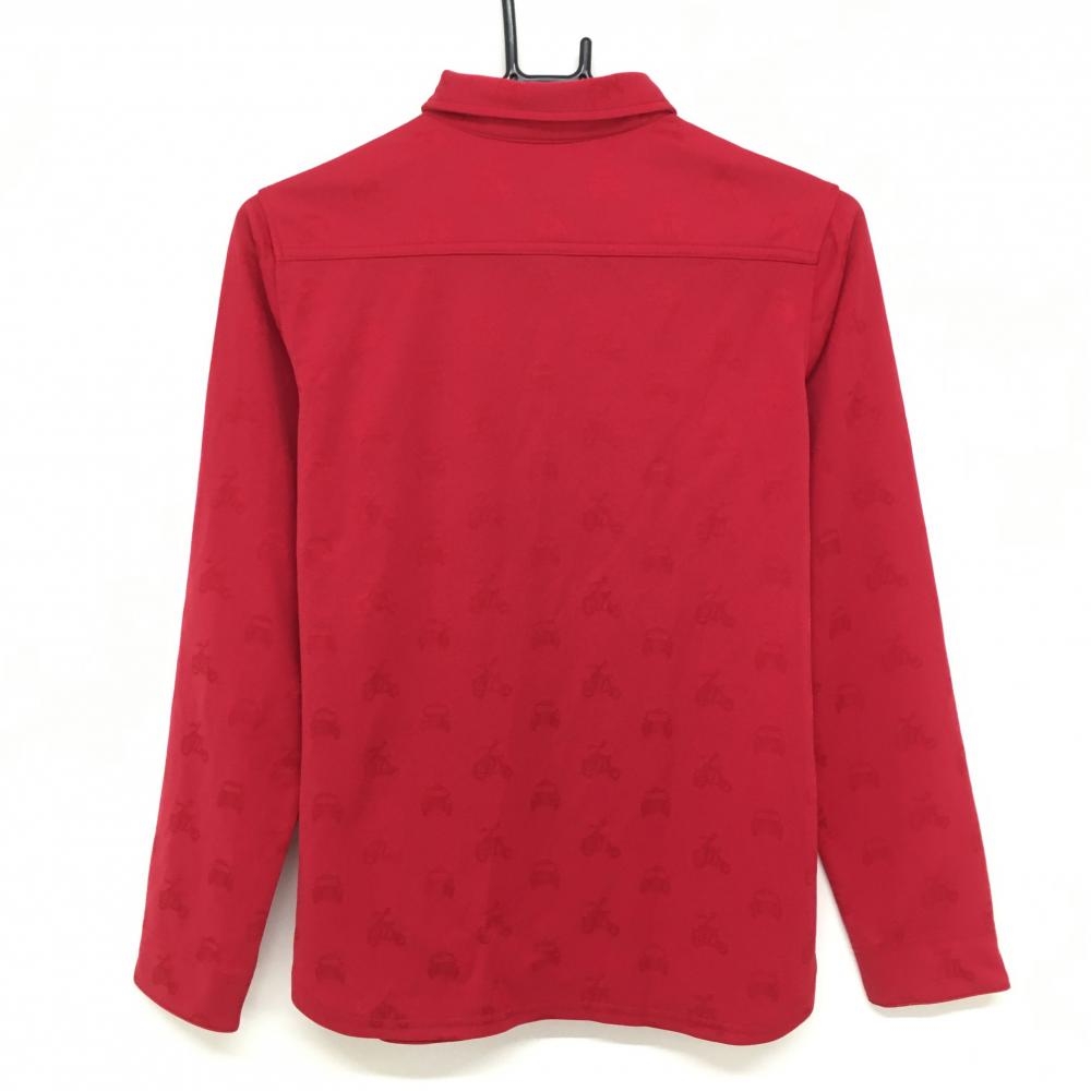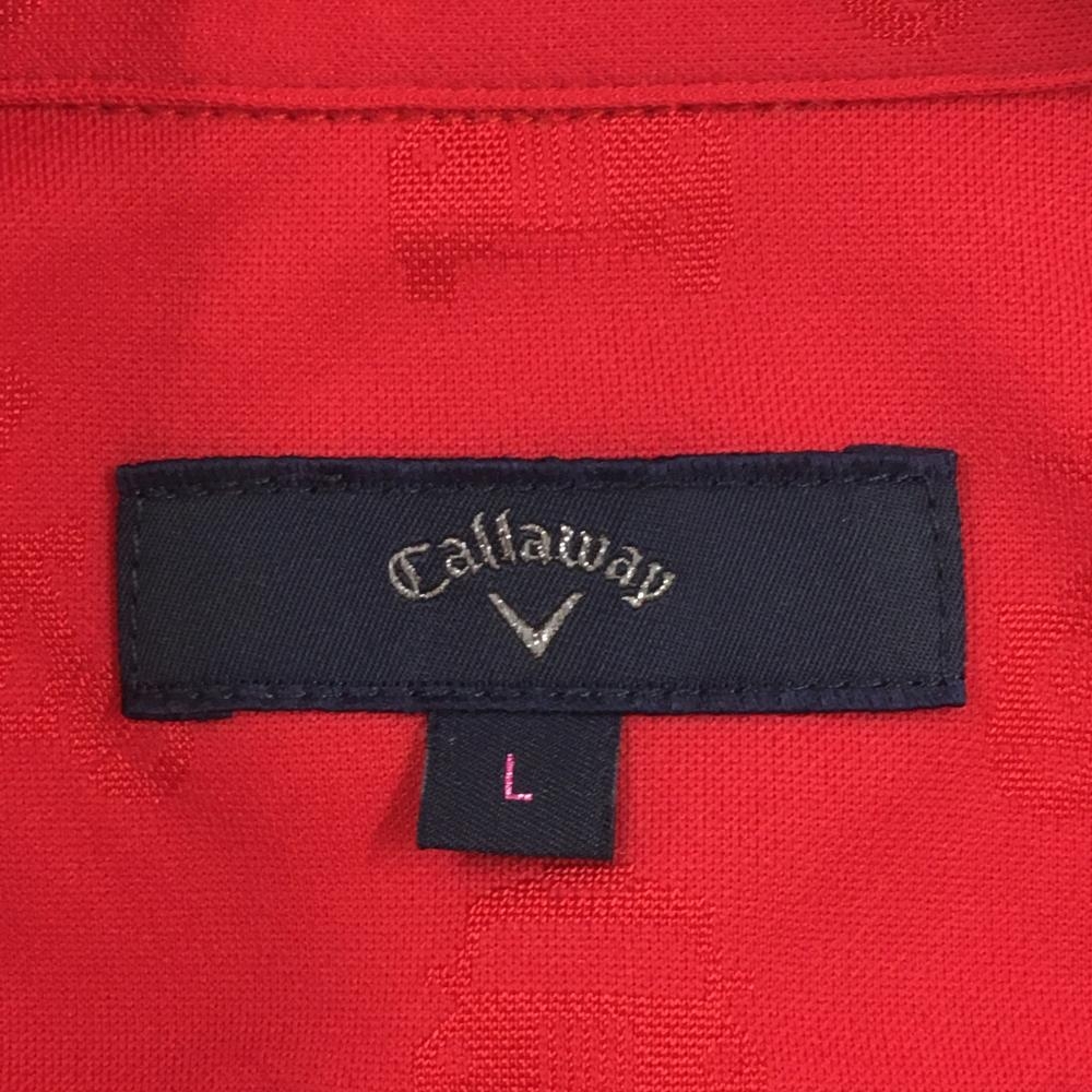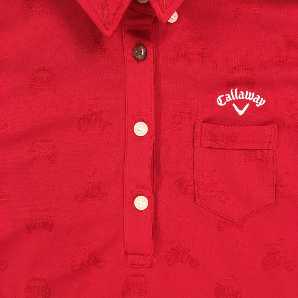 【美品】キャロウェイ 長袖ポロシャツ レッド 総柄織生地 ボタンダウン レディース L ゴルフウェア Callaway